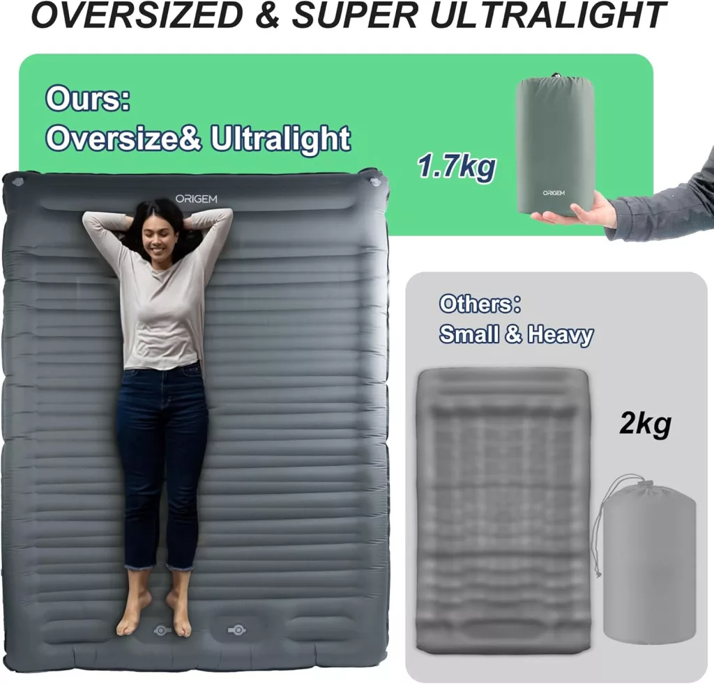 • Dimensiune extra mare: 200 x 145 x 14 cm - una dintre cele mai mari saltele de camping pentru două persoane de pe piață