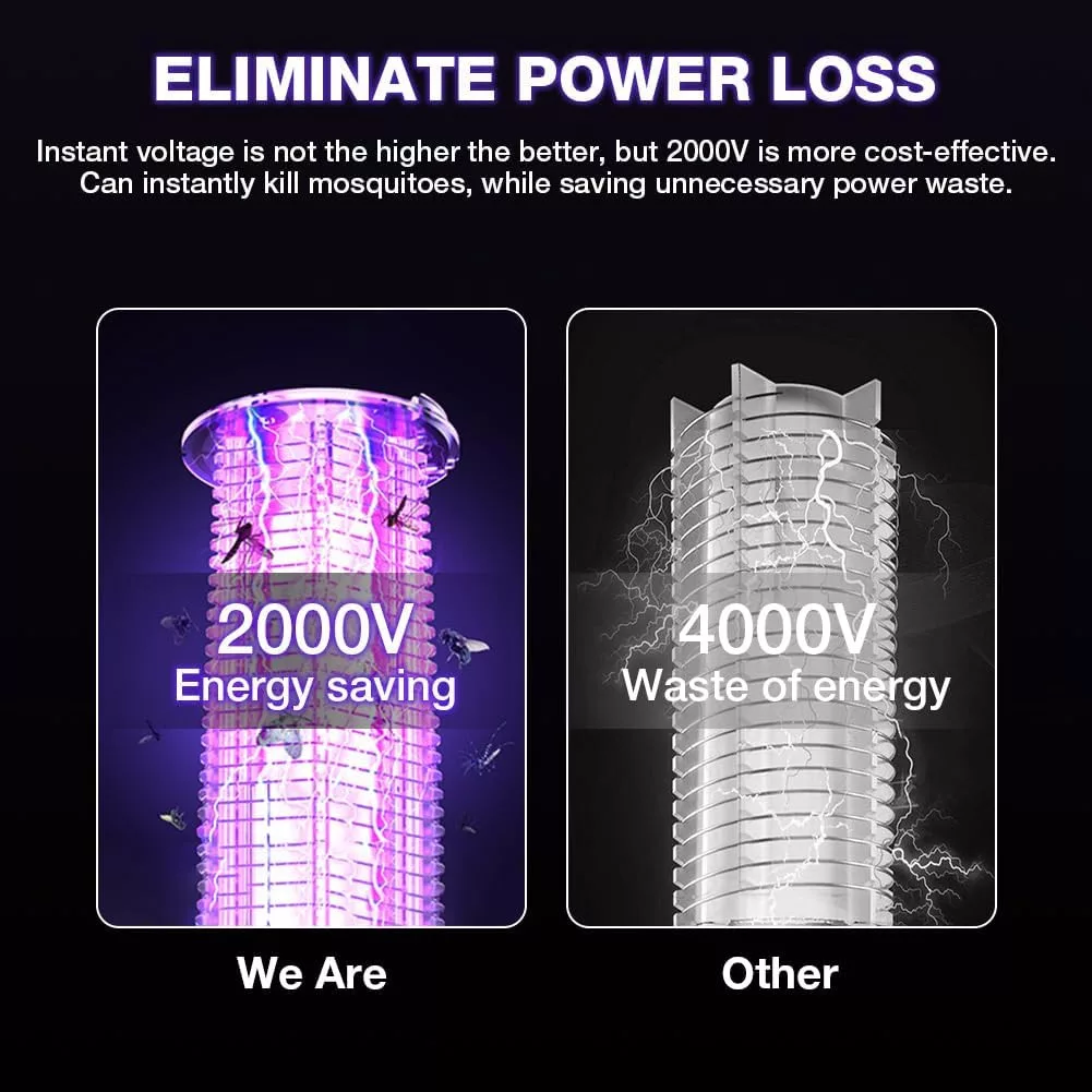 - Grilaj electric de 2000V: Descărcarea electrică puternică garantează eliminarea imediată a insectelor.