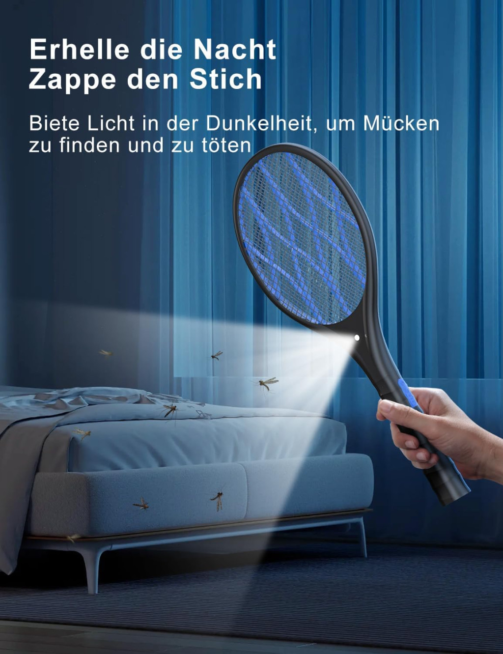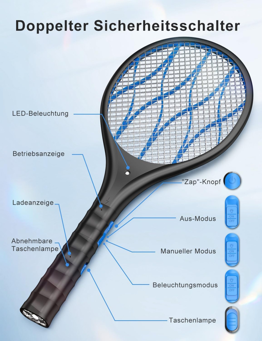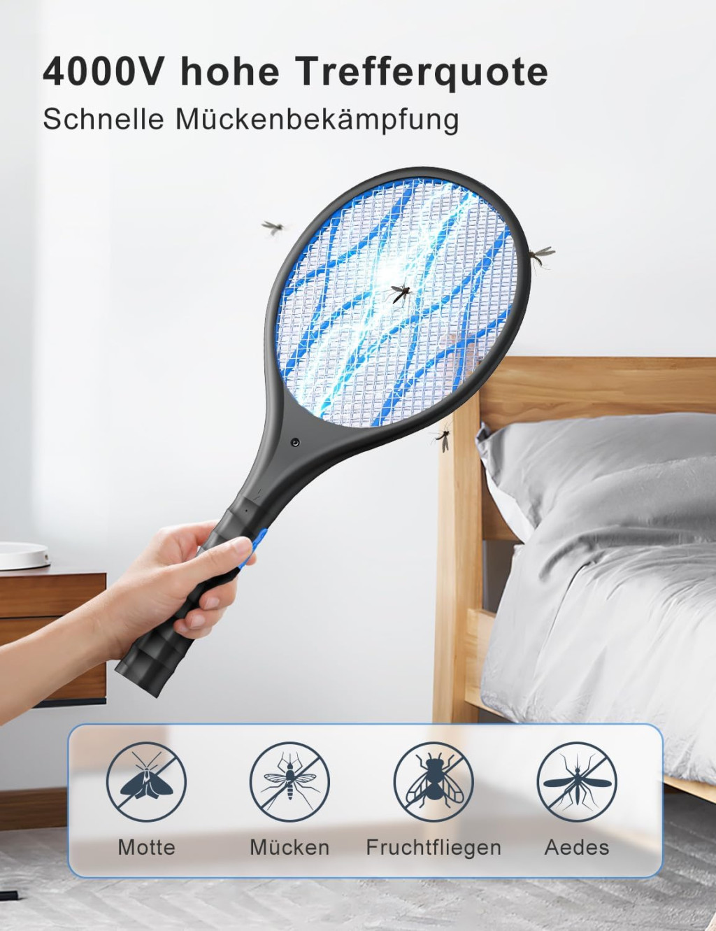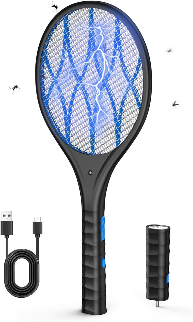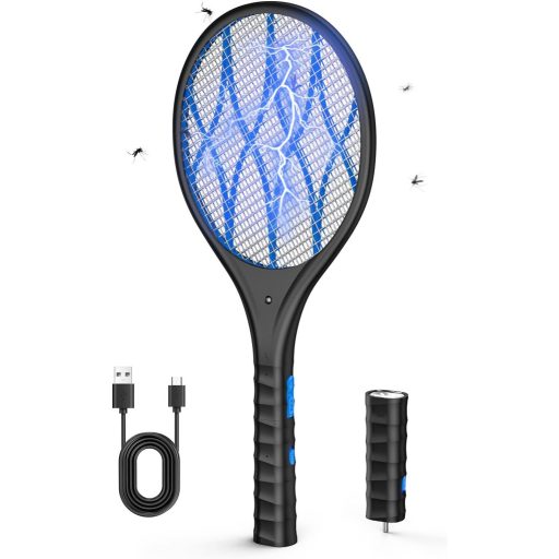AROEVE Elektromos Légyfogó 4000V USB Töltéssel LED Lámpával Háromrétegű Védőhálóval