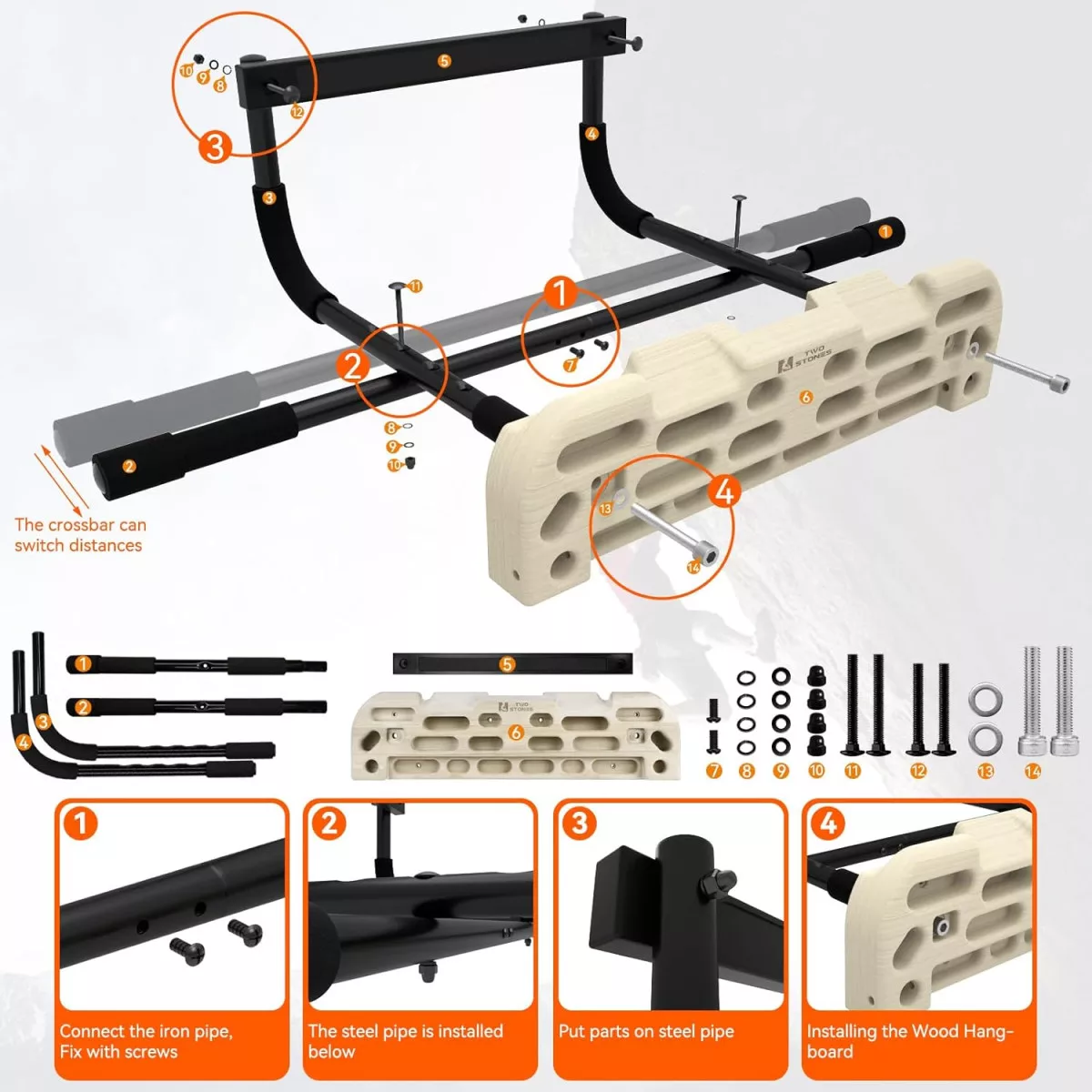 - Include: Bară de tracțiuni + hangboard + tot hardware-ul necesar