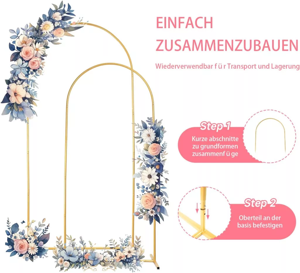 ???? De ce să alegeți acest produs? Cele trei arcade de dimensiuni diferite vă permit să adaptați decorul la diverse locații și evenimente. Fie că este vorba de o ceremonie intimă sau de un eveniment mai mare, veți găsi întotdeauna dimensiunea potrivită.