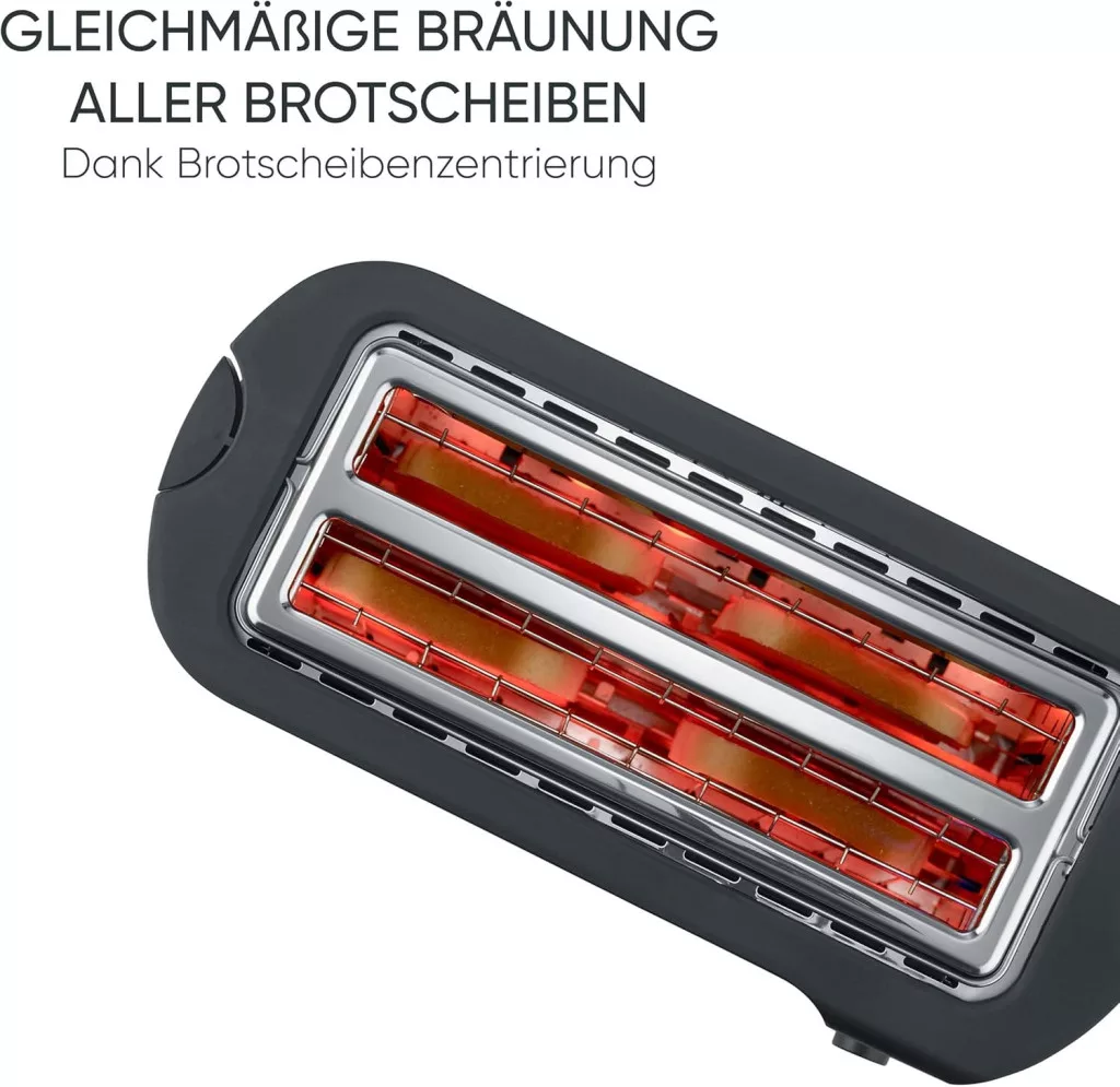 • Automatikus szelet-középítés: Az intelligens rendszer automatikusan középre helyezi a kenyérszeleteket az egyenletes pirítás érdekében