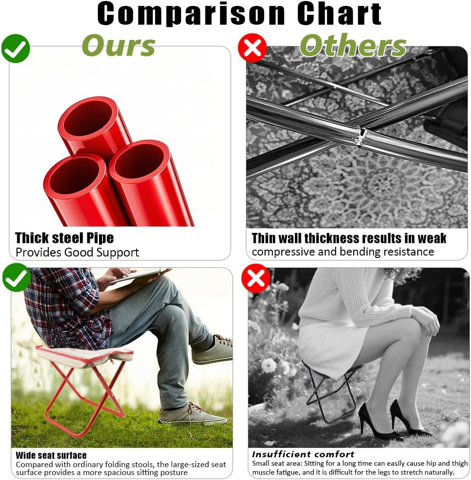 Construcția pliabilă permite scaunului să încapă cu ușurință în mașină, în rucsac sau chiar în buzunarul hainei. Nu ocupă mai mult loc decât un ziar împăturit, oferind totuși confort complet atunci când aveți nevoie. Mecanismul simplu de deschidere-închidere înseamnă că este gata de utilizare în câteva secunde.