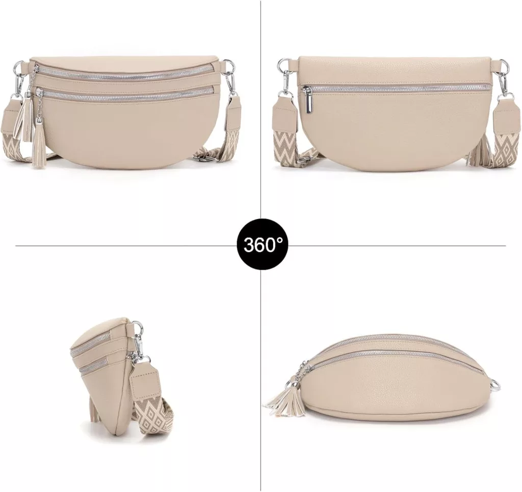 - Opțiuni de purtare versatile (geantă de umăr, crossbody, geantă de șold)