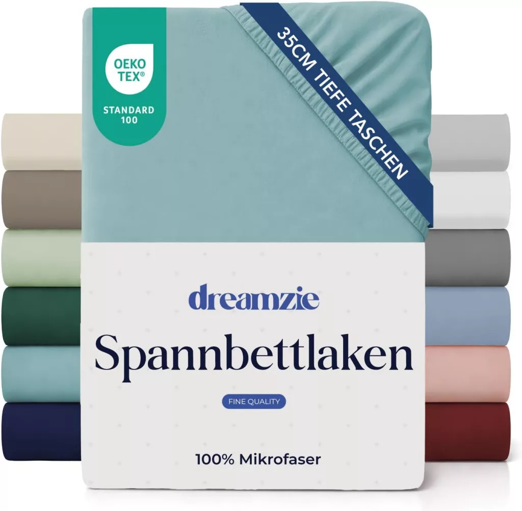 Cearșaf cu elastic Dreamzie 160x200 cm cu buzunare adânci din microfibră, Aqua