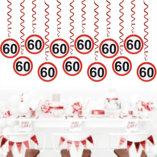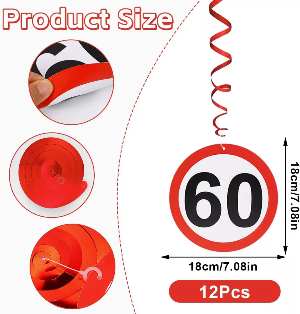 Ez a lenyűgöző dekorációs szett tökéletes választás a 60. születésnap megünnepléséhez. A csomag 12 darab piros spirál garlandot és 12 darab forgalmi jelzés mintájú garlandot tartalmaz, amelyek klasszikus piros-fehér színkombinációban készültek. Az elegáns dizájn és a magas minőségű anyagok garantálják, hogy az ünnepség igazán emlékezetes lesz.