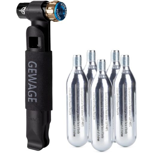 Pompa pentru bicicletă GEWAGE CO2 este soluția perfectă pentru cei care au nevoie de o reparare rapidă și eficientă a anvelopelor în timpul deplasării. Acest dispozitiv compact și ușor umflă anvelopa defectă în câteva secunde, asigurându-vă că nu veți rămâne niciodată blocat pe drum. Structura din aliaj de aluminiu garantează durabilitatea și siguranța, în timp ce cartușele CO2 și levierele pentru anvelope incluse oferă o soluție completă pentru orice biciclist.