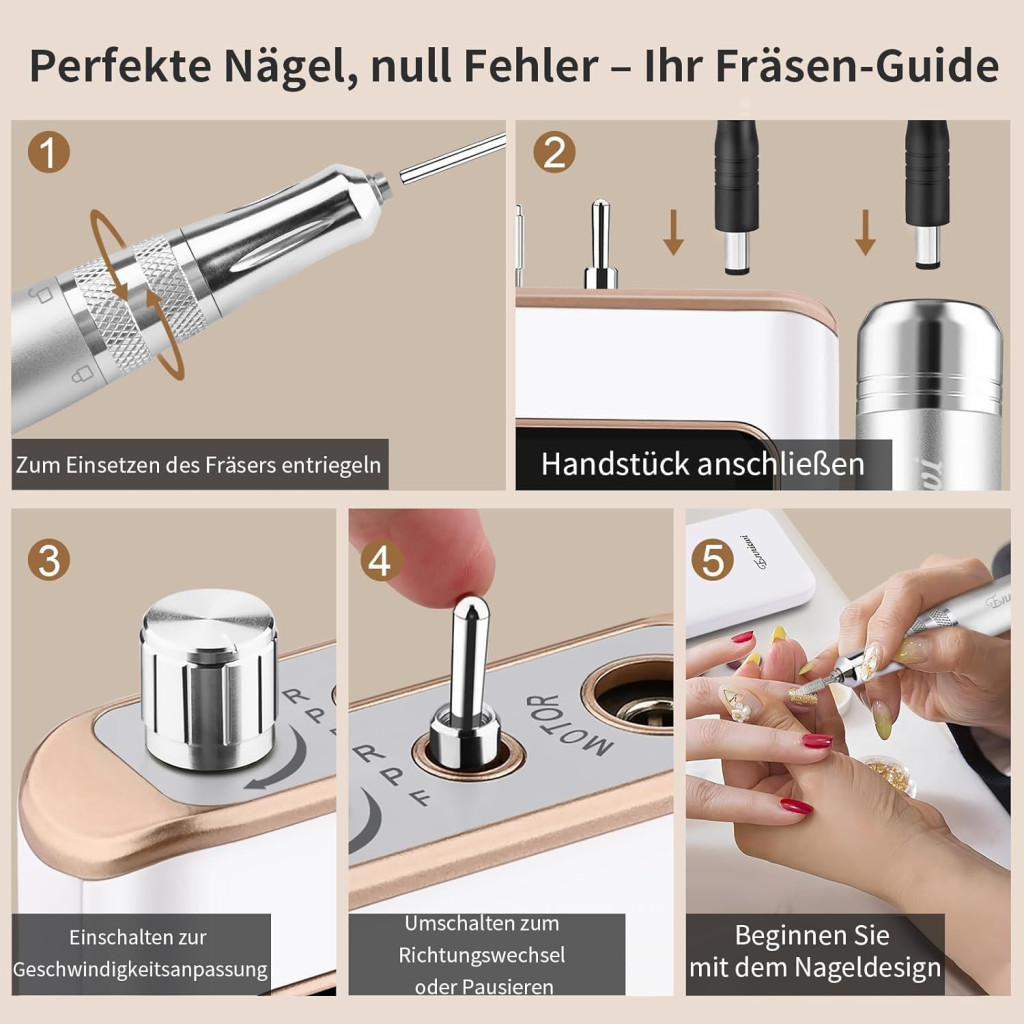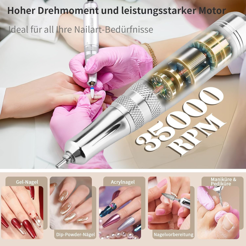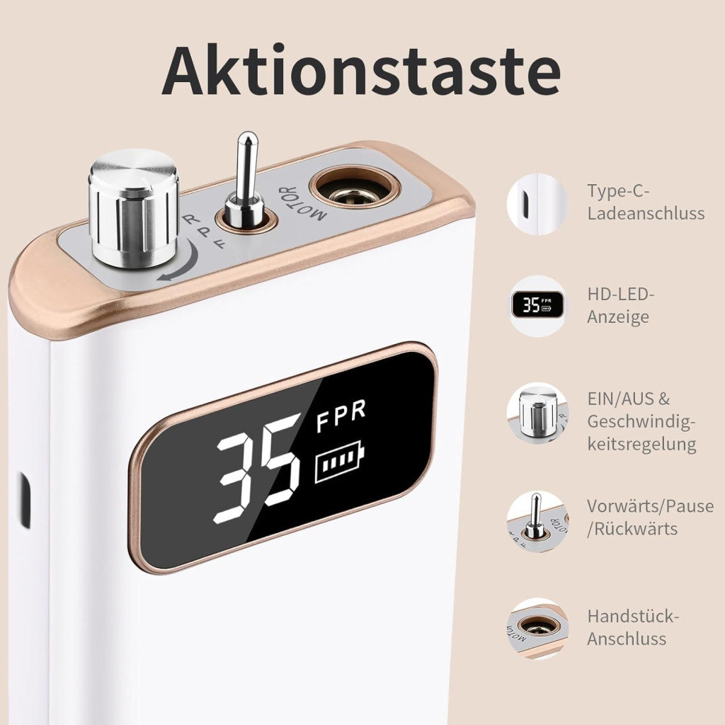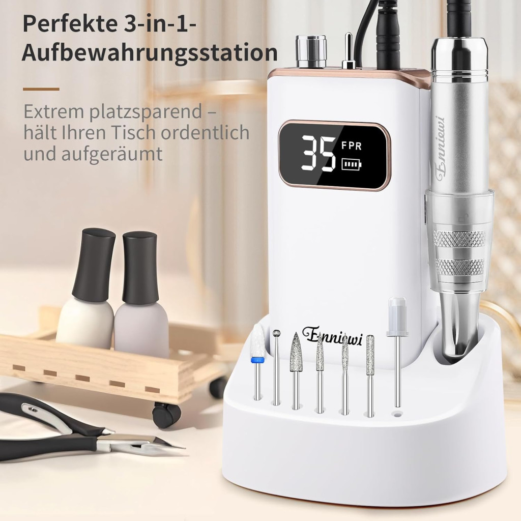 Freză Unghii Enniewi 35000 RPM Albă, Aparat Profesional Manichiură