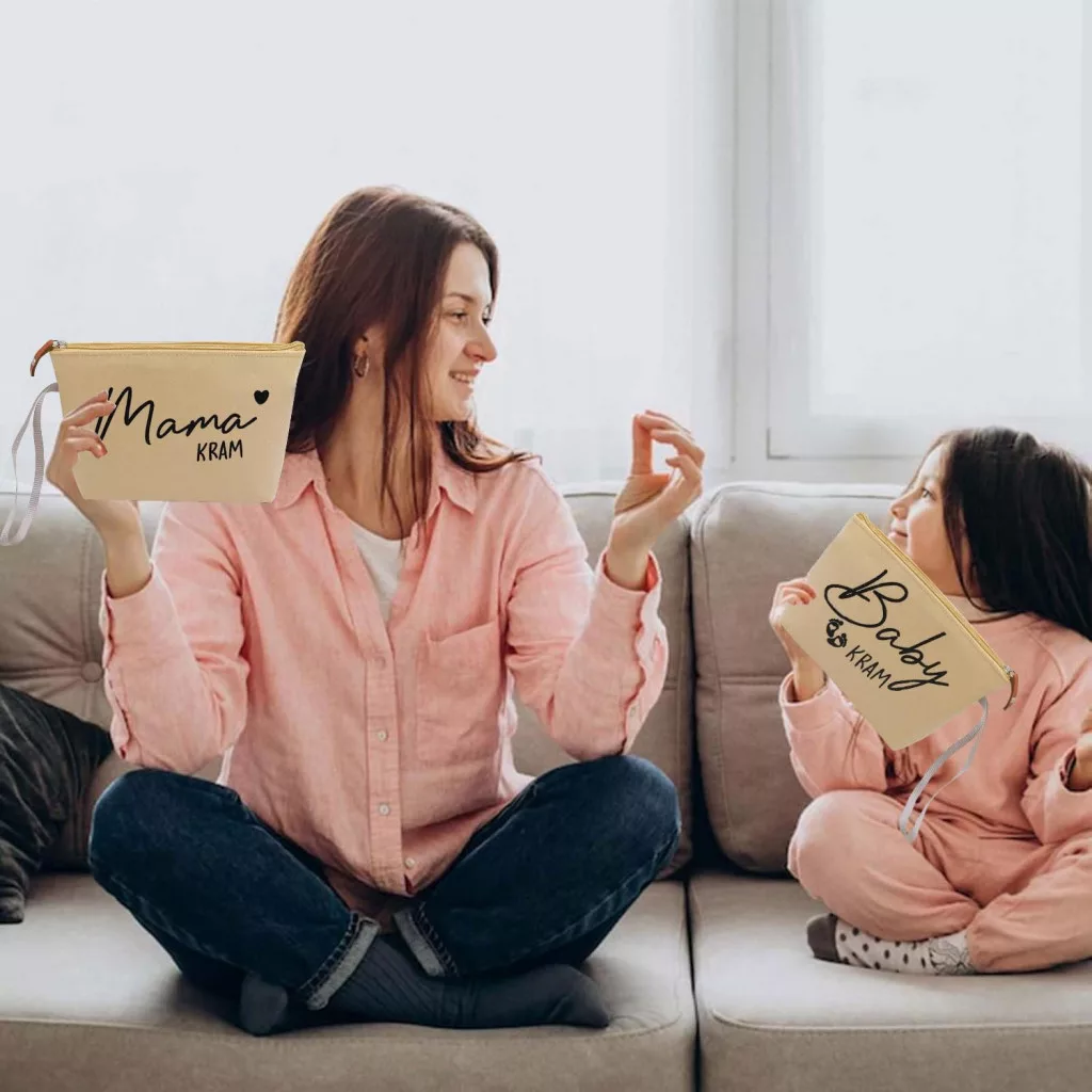 Trusă de cosmetice cu fermoar, Bej Profund - Cadoul Perfect pentru Viitoare Mamă