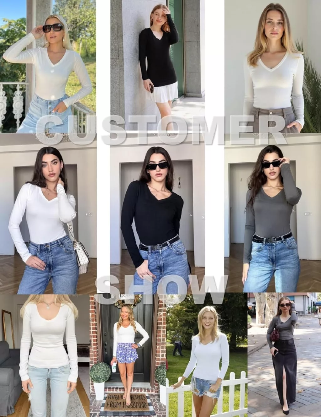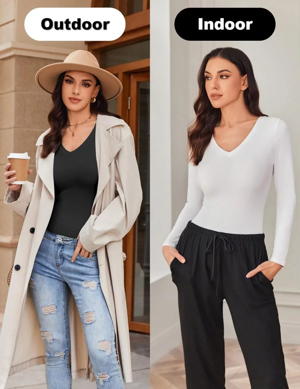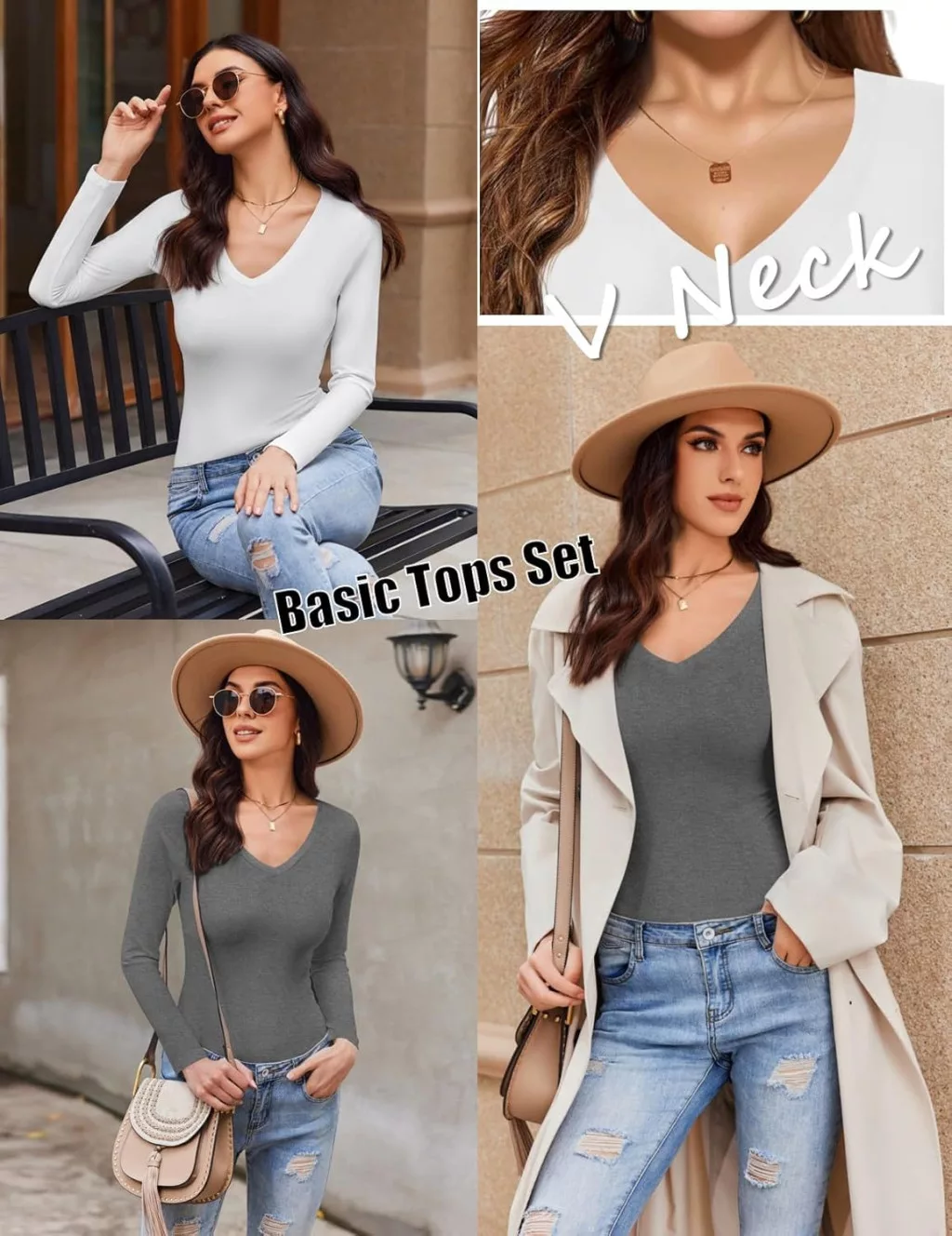 - Design cu decolteu în V: Aspect elegant și feminin, care arată bine singur sau stratificat
