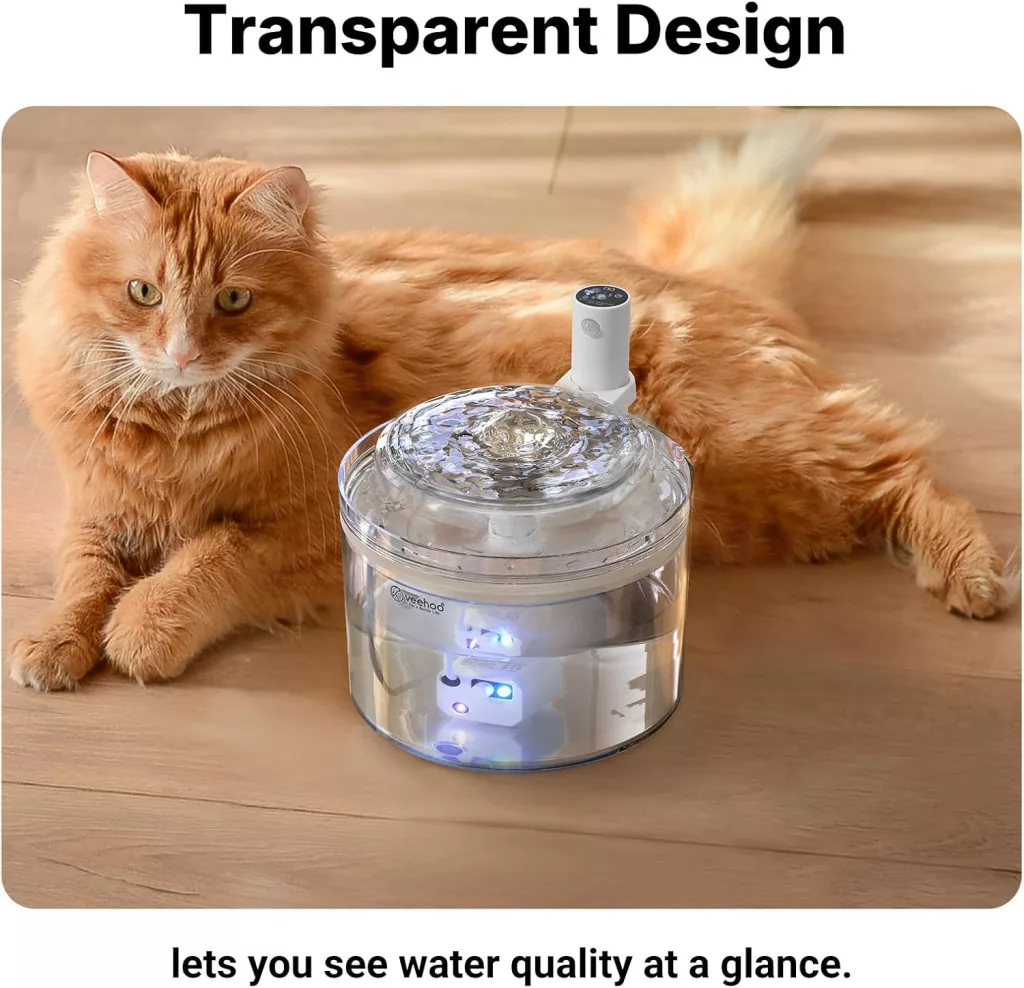 Design transparent Nivelul și calitatea apei sunt ușor de vizualizat. Asigură faptul că pisica bea mereu apă proaspătă.