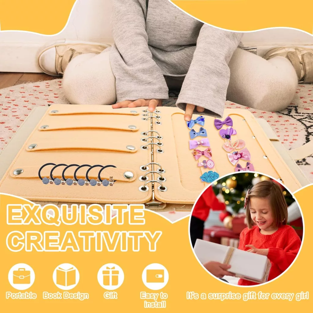 Organizatorul de accesorii de păr nu este doar un instrument practic de depozitare, ci și un element de decor elegant pentru cameră. Materialul textil tip fetru premium garantează o durată lungă de viață și durabilitate, în timp ce designul unic, tip carte, vă permite să accesați cu ușurință toate accesoriile de păr. Instalarea simplă și dimensiunea portabilă îl fac ideal pentru călătorii și vacanțe. Și mai ales, ajută copiii să învețe importanța depozitării regulate, rămânând un decor frumos pentru cameră.
