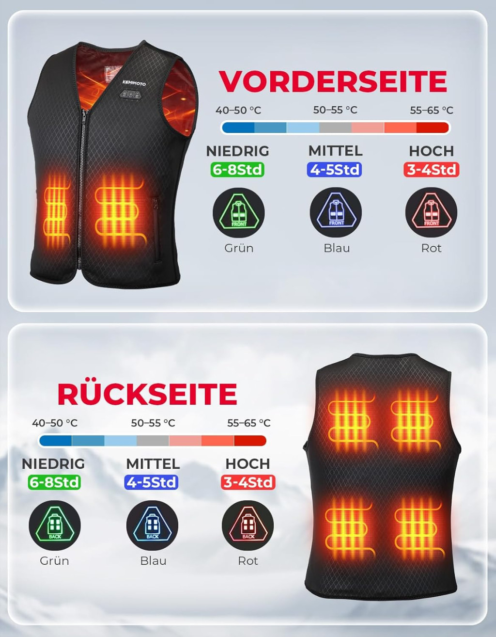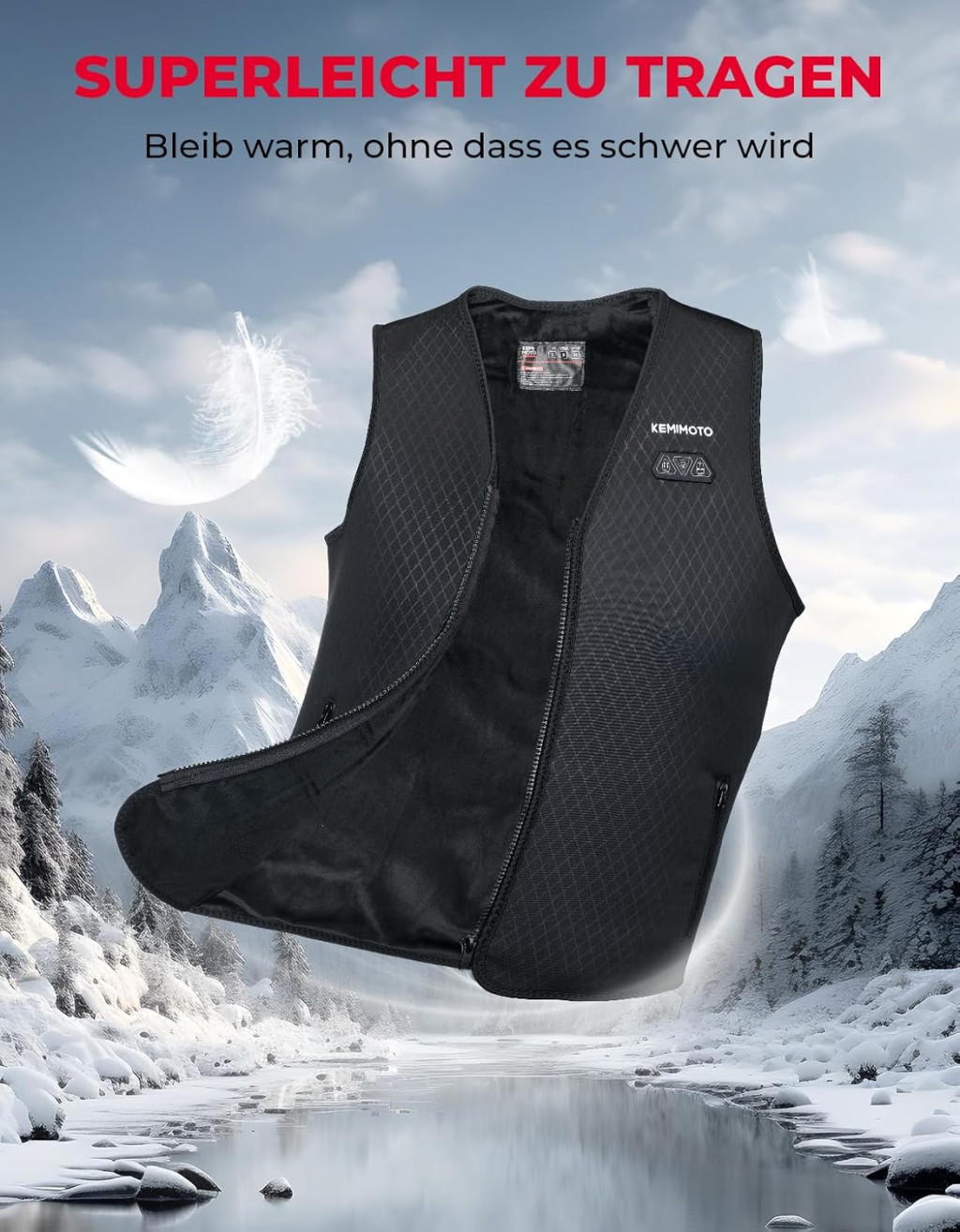 Vesta încălzită KEMIMOTO este alegerea perfectă pentru cei care iubesc activitățile în aer liber și nu doresc să renunțe la confort și căldură. Fie că este vorba de motociclism, camping, schi sau pur și simplu o plimbare de iarnă, această vestă va fi un partener de încredere. Operarea simplă, utilizarea versatilă și calitatea excelentă fac din acest produs alegerea ideală.