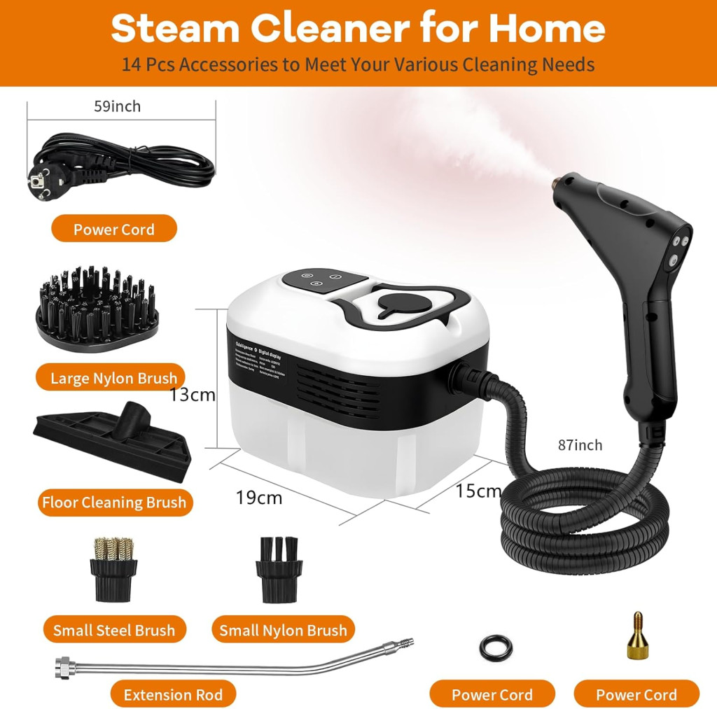 A 15 másodperces felmelegedési idő azt jelenti, hogy azonnal használatra kész, amikor szükséged van rá. Az 1200 ml-es víztartály hosszú, szünet nélküli tisztítási munkálatokat tesz lehetővé, míg az 1.8 kg-os súly és kompakt kialakítás könnyűvé teszi a szállítást és tárolást. Legyen szó konyháról, fürdőszobáról, padlóról, autóról vagy klímaberendezésről, ez a gőztisztító minden feladatra képes.
