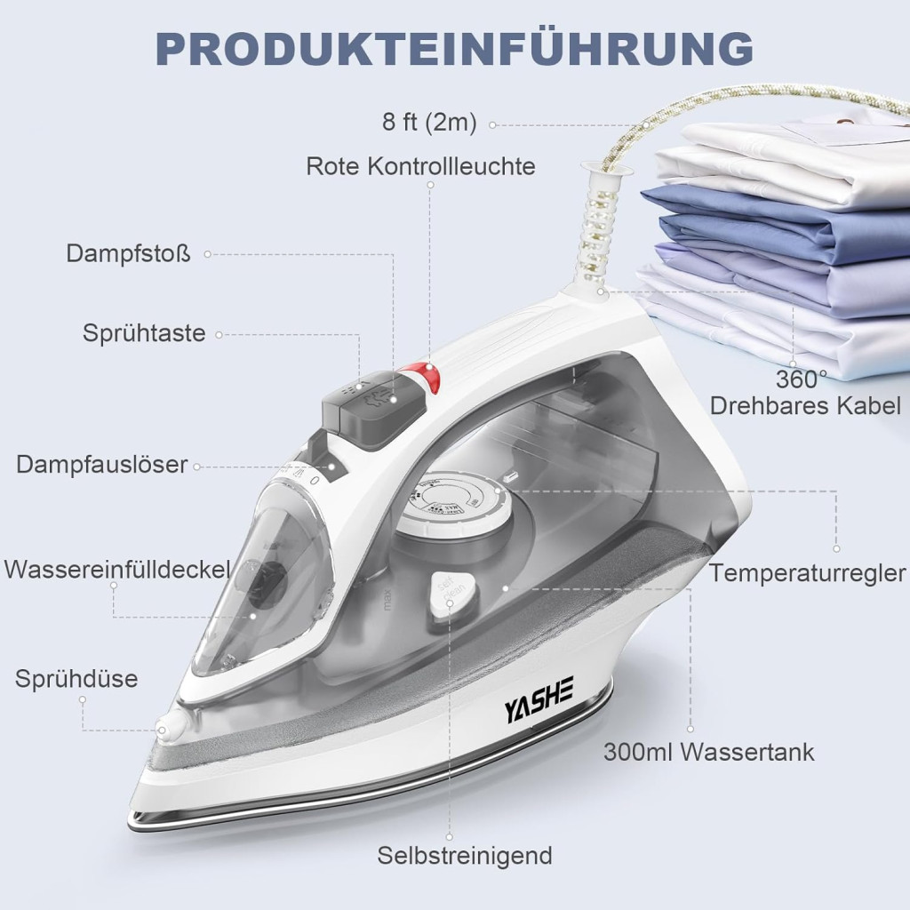 A YASHE 2300W gőzvasaló kiváló választás azok számára, akik gyors, hatékony és megbízható vasalási megoldást keresnek. Az erőteljes teljesítmény, a nagy víztartály és a fejlett funkciók kombinációja ezt a vasalót a piaci legjobb választások közé helyezi. Legyen szó professzionális varrásról vagy napi háztartási vasalásról, ez a gőzvasaló minden igényt kielégít.