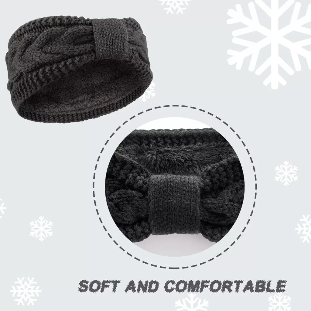 DRESHOW Bandă de Păr de Iarnă pentru Femei - Bentiță Tricotată cu Căptușeală Groasă din Fleece