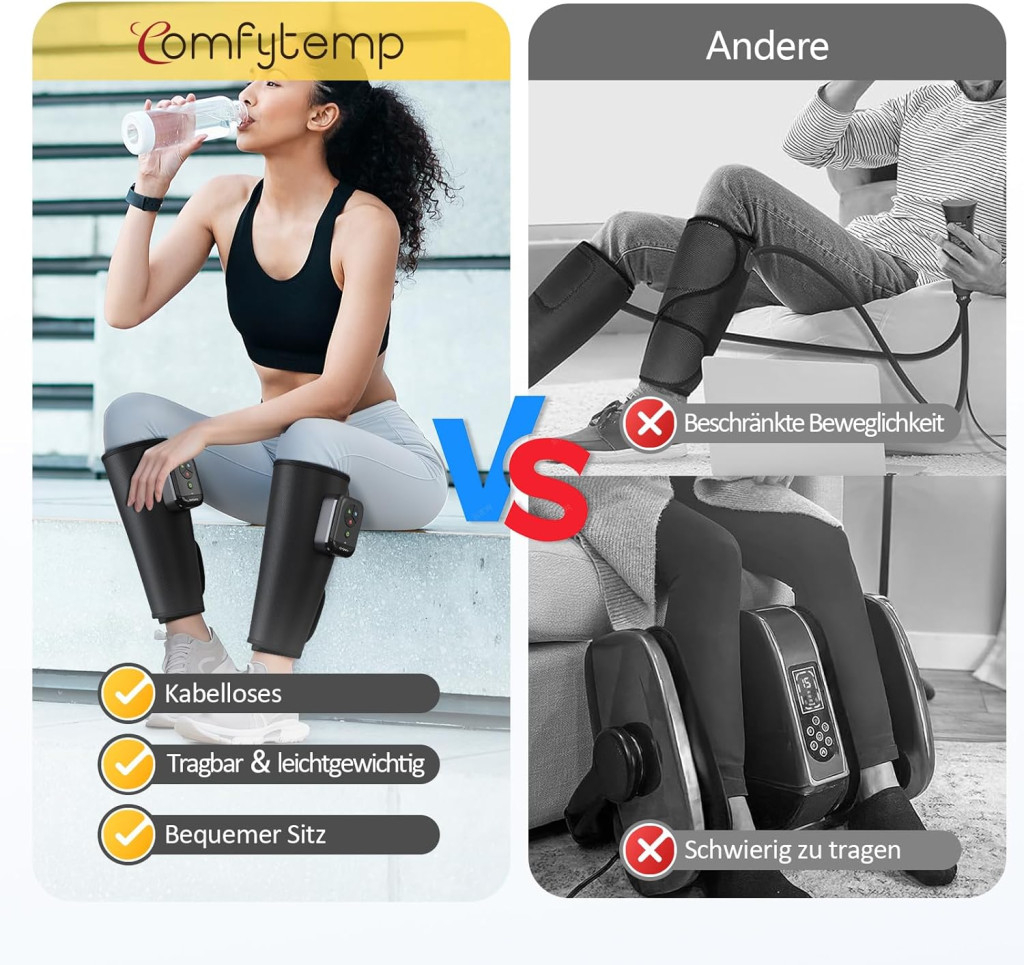Comfytemp Wireless Leg Massager poate fi utilizat versatil în diverse situații și pentru diverse scopuri. Pentru sportivi, este ideal pentru recuperarea de după antrenament și pentru relaxarea tensiunii din gambe. Angajații de birou, care petrec multe ore stând pe scaun, pot beneficia enorm de pe urma sesiunilor zilnice de masaj, care reduc oboseala picioarelor și îmbunătățesc circulația.