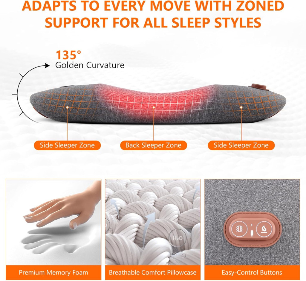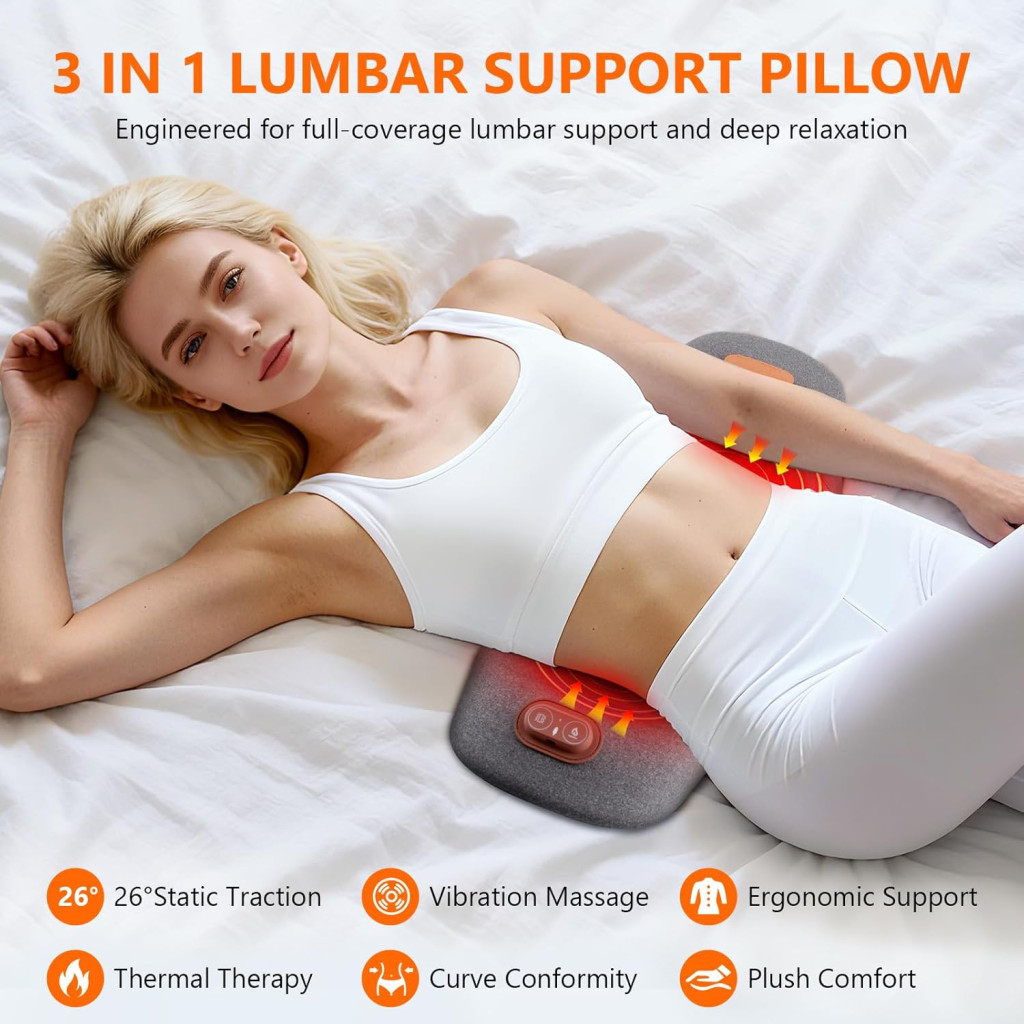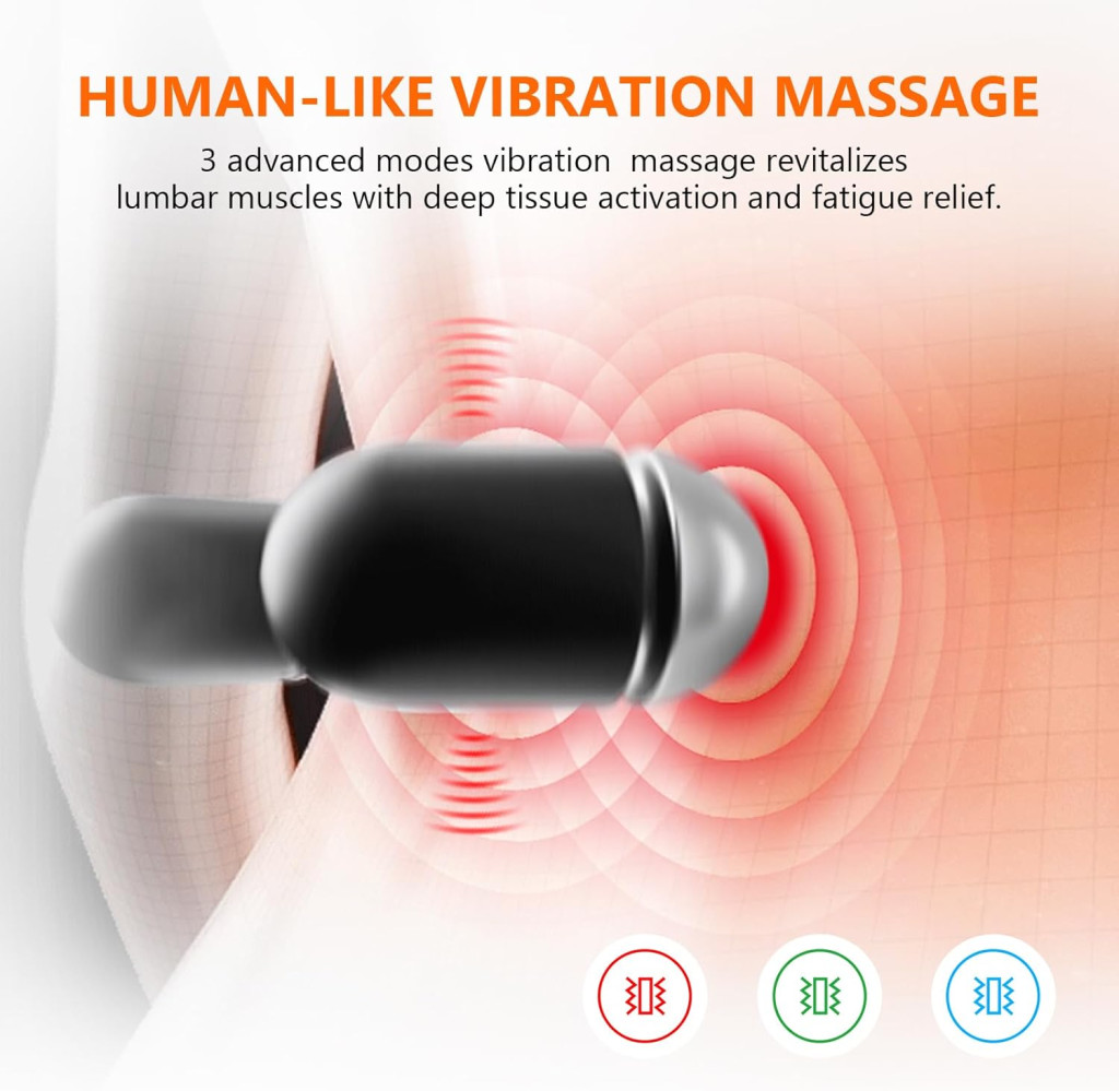 USUIELIGHT Elektromos Lumbális Párna Hővel és Vibrációs Masszázzsal - Ortopédikus Memóriahabos Hátpárna