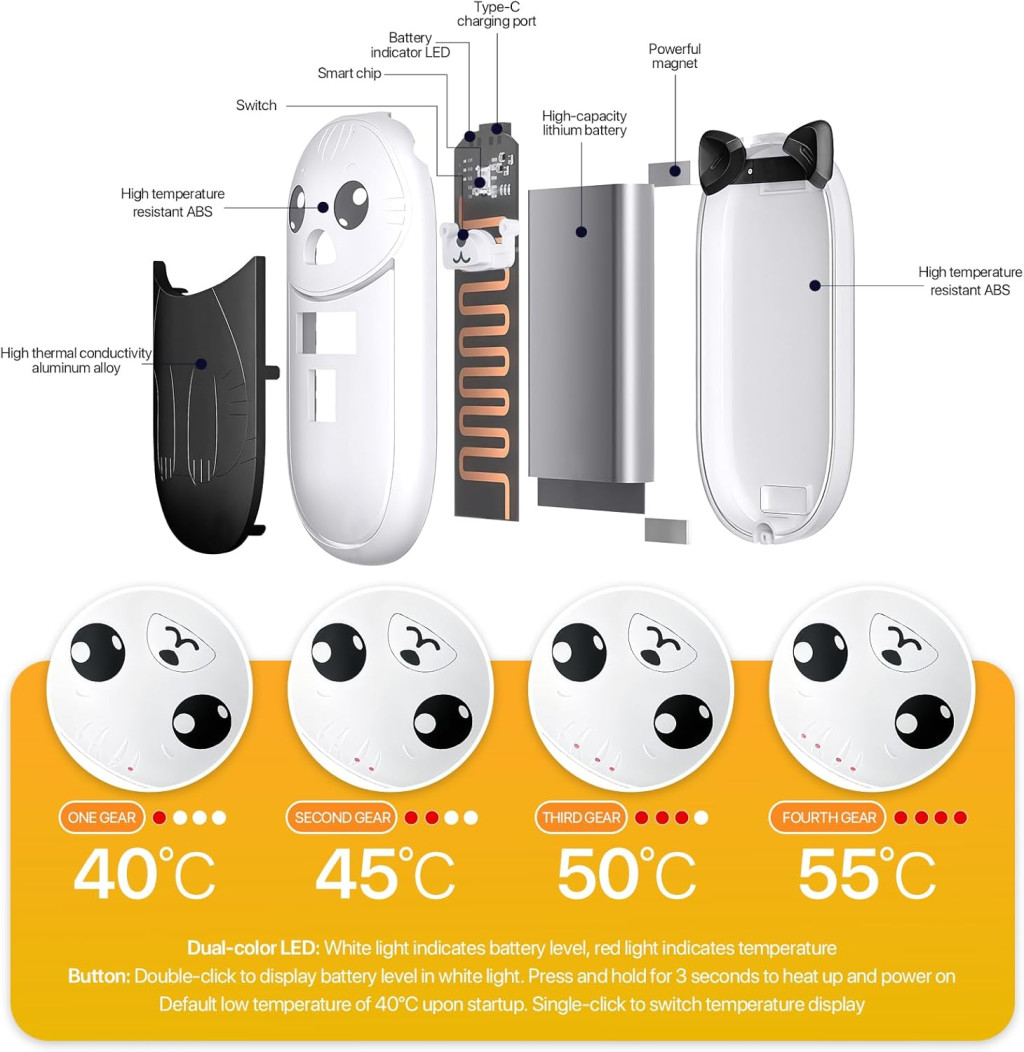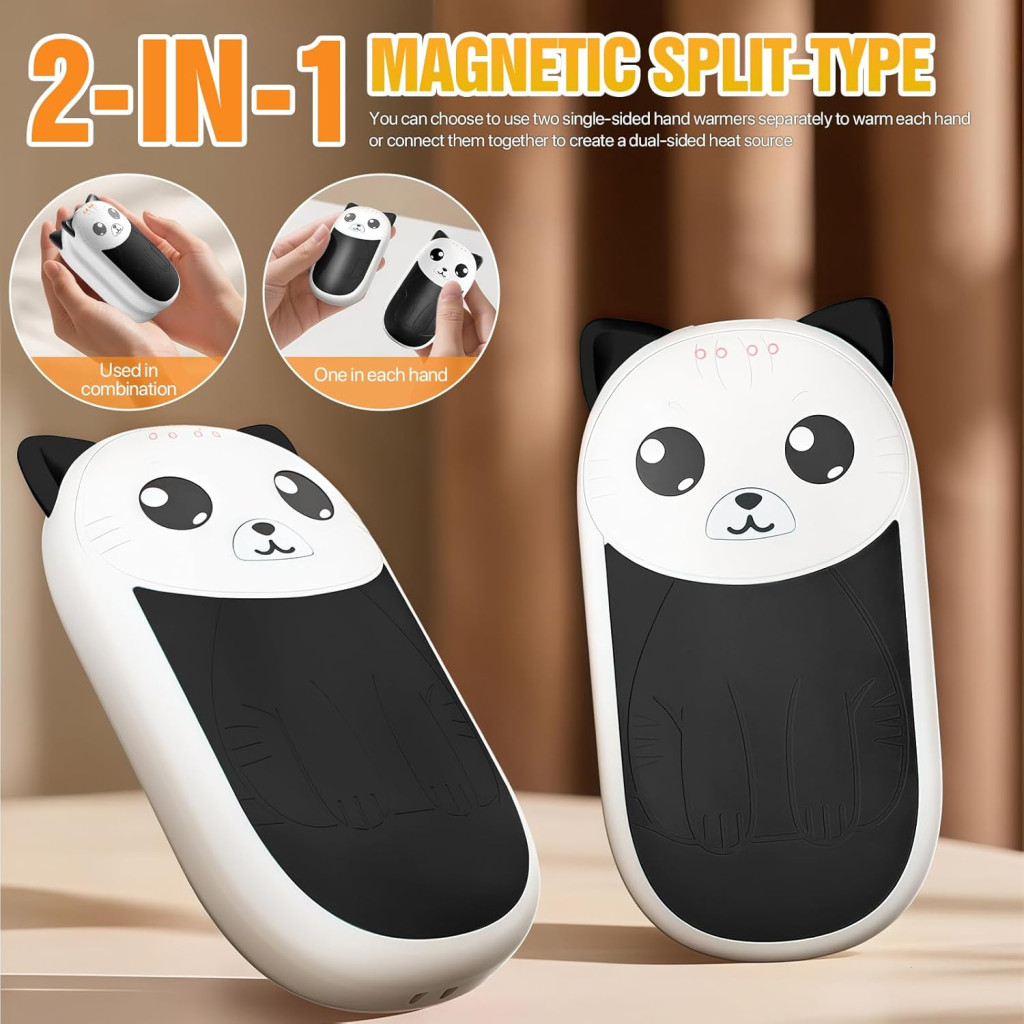 - Sistem magnetic 2 în 1: Poate fi separat în două încălzitoare independente de 3000 mAh sau conectat într-o unitate puternică de 6000 mAh