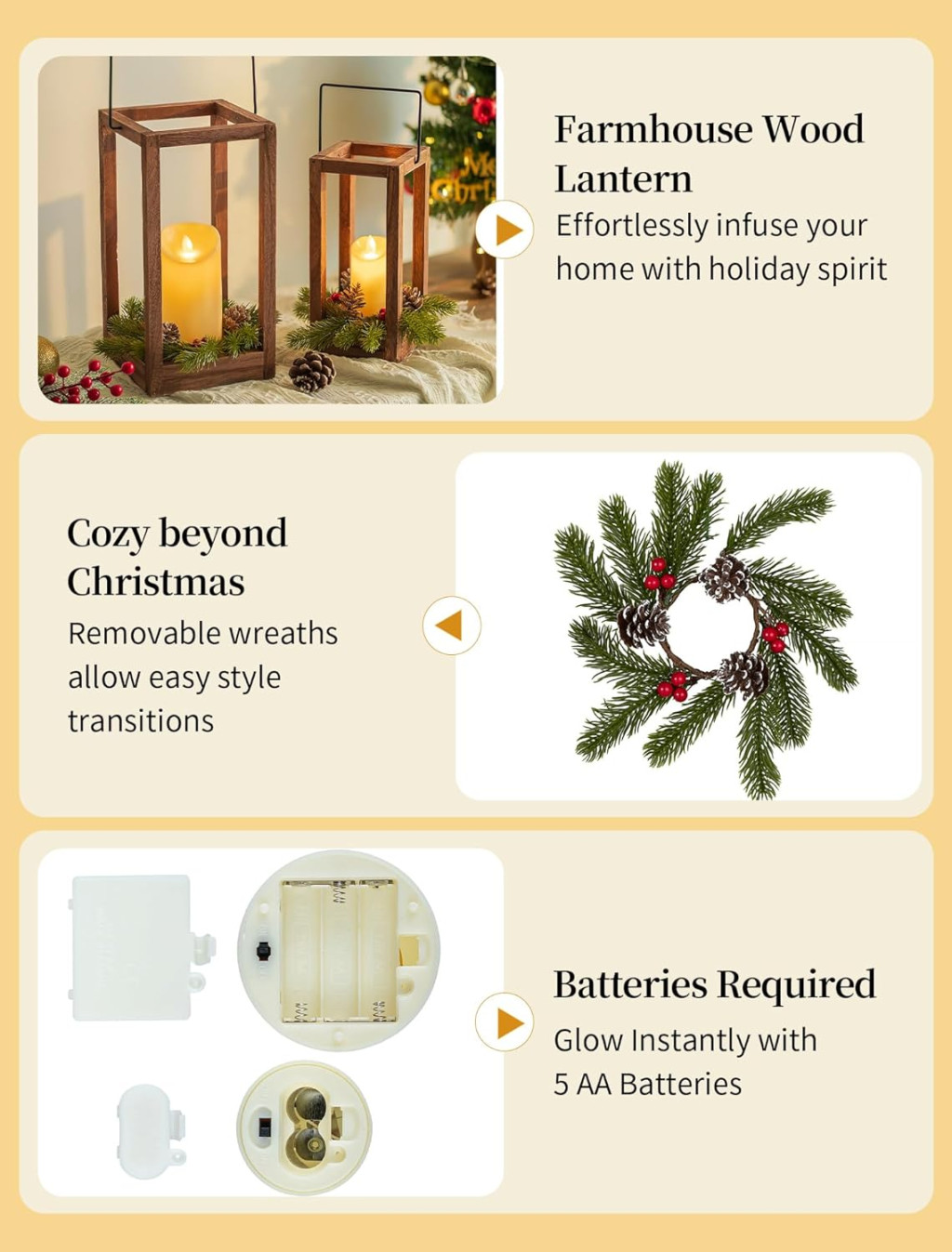 Ghirlandele detașabile vă permit să utilizați lămpile în orice perioadă a anului. Primăvara, vara și toamna, pur și simplu scoateți ghirlandele de Crăciun, iar lampa din lemn rămâne o decorațiune elegantă în casa dumneavoastră.