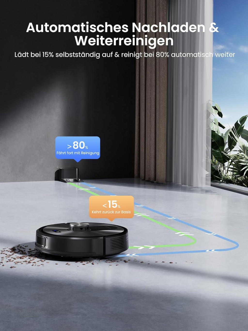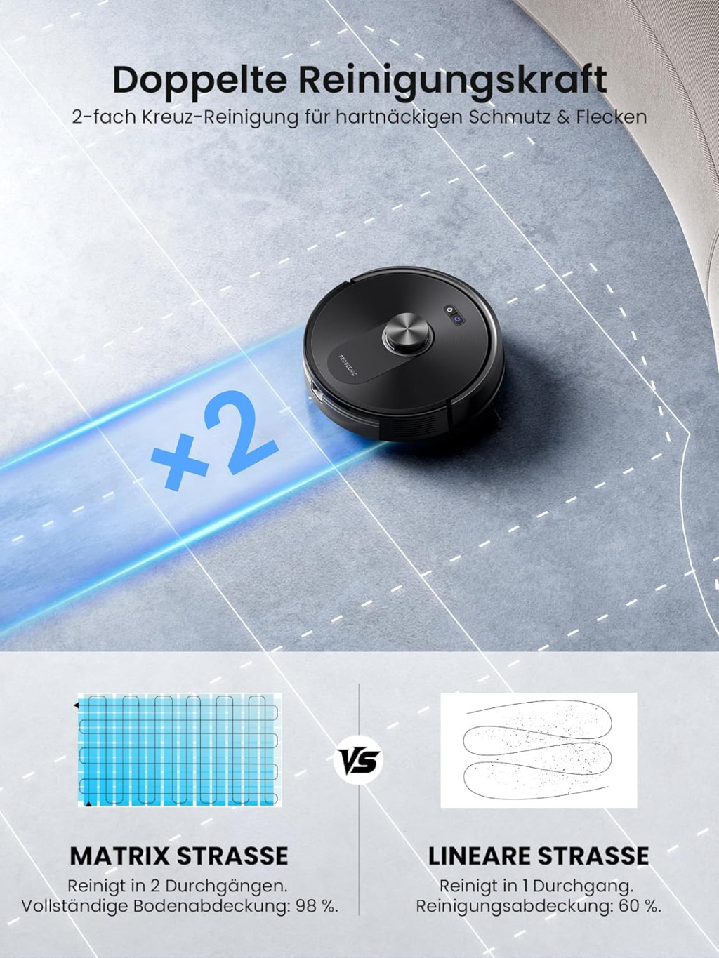 Az intelligens LiDAR technológia mindössze 15 perc alatt teljes térképet készít az otthonáról – háromszor gyorsabban, mint a hagyományos robotporszívók. 98%-os lefedettséget biztosít, így egyetlen sarok sem marad ki. Akár 5 különböző térképet tárolhat többszintes házakhoz, és szobánként testreszabhatja a tisztítást.