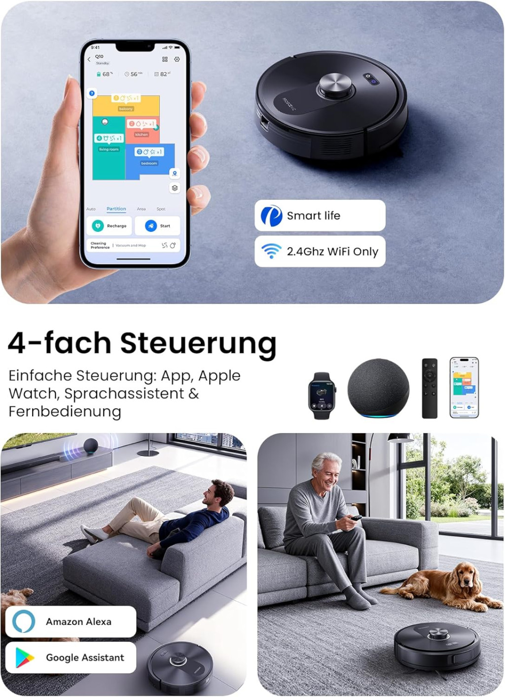 A többféle vezérlési lehetőség (app, hangvezérlés, okosóra, távirányító) biztosítja, hogy a család bármelyik tagja könnyedén indíthatja el a robotot. A 2 év garancia és a 24/7 ügyfélszolgálat azt jelenti, hogy biztonságban van a vásárlásával.