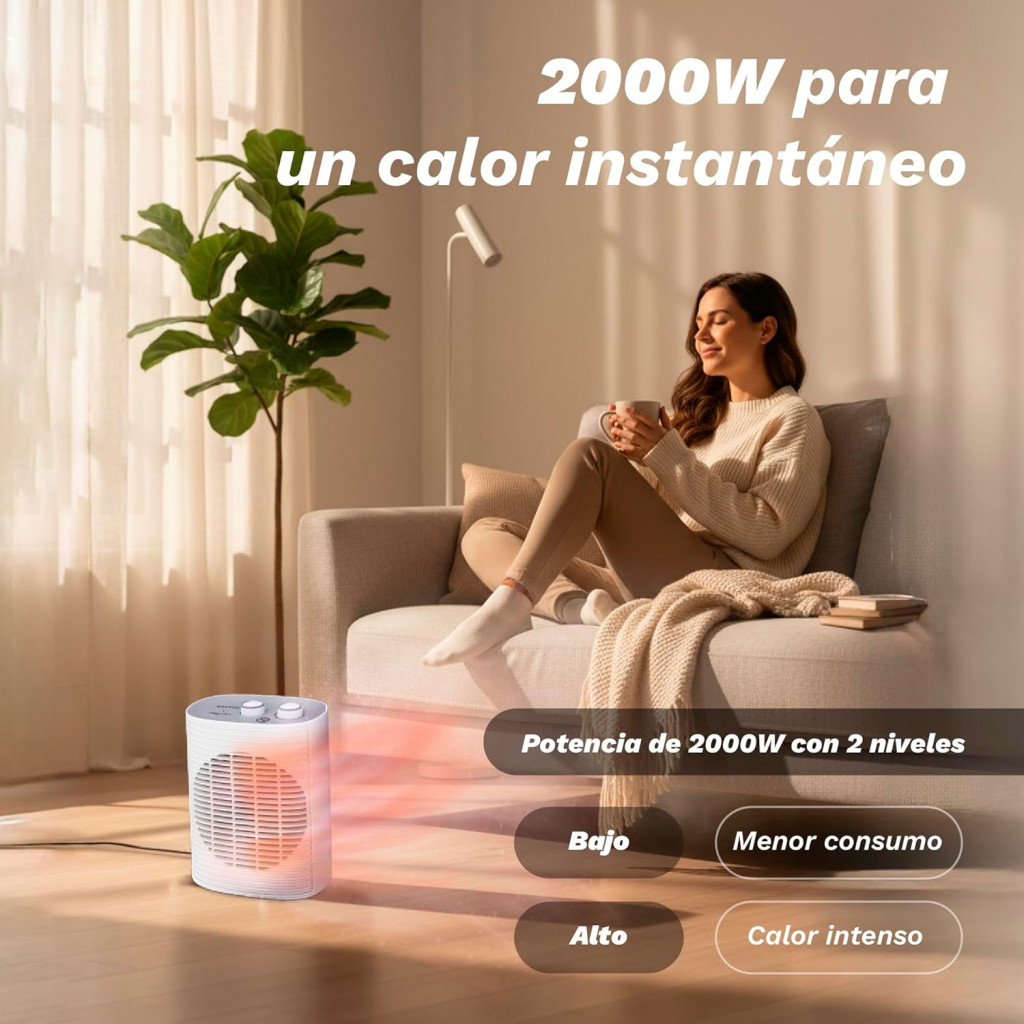 • 2000W teljesítmény - Gyors és hatékony fűtés kis és közepes méretű szobákhoz