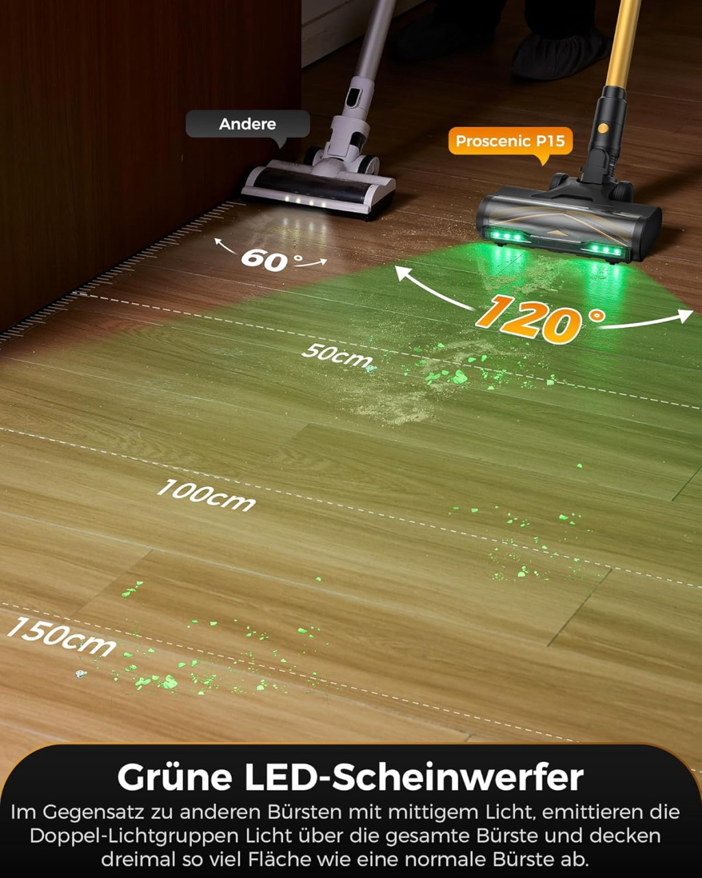 - GreenEye technológia: Az улучшенный zöld LED fény még a legfinomabb porszemcséket is láthatóvá teszi a sötét sarkokban