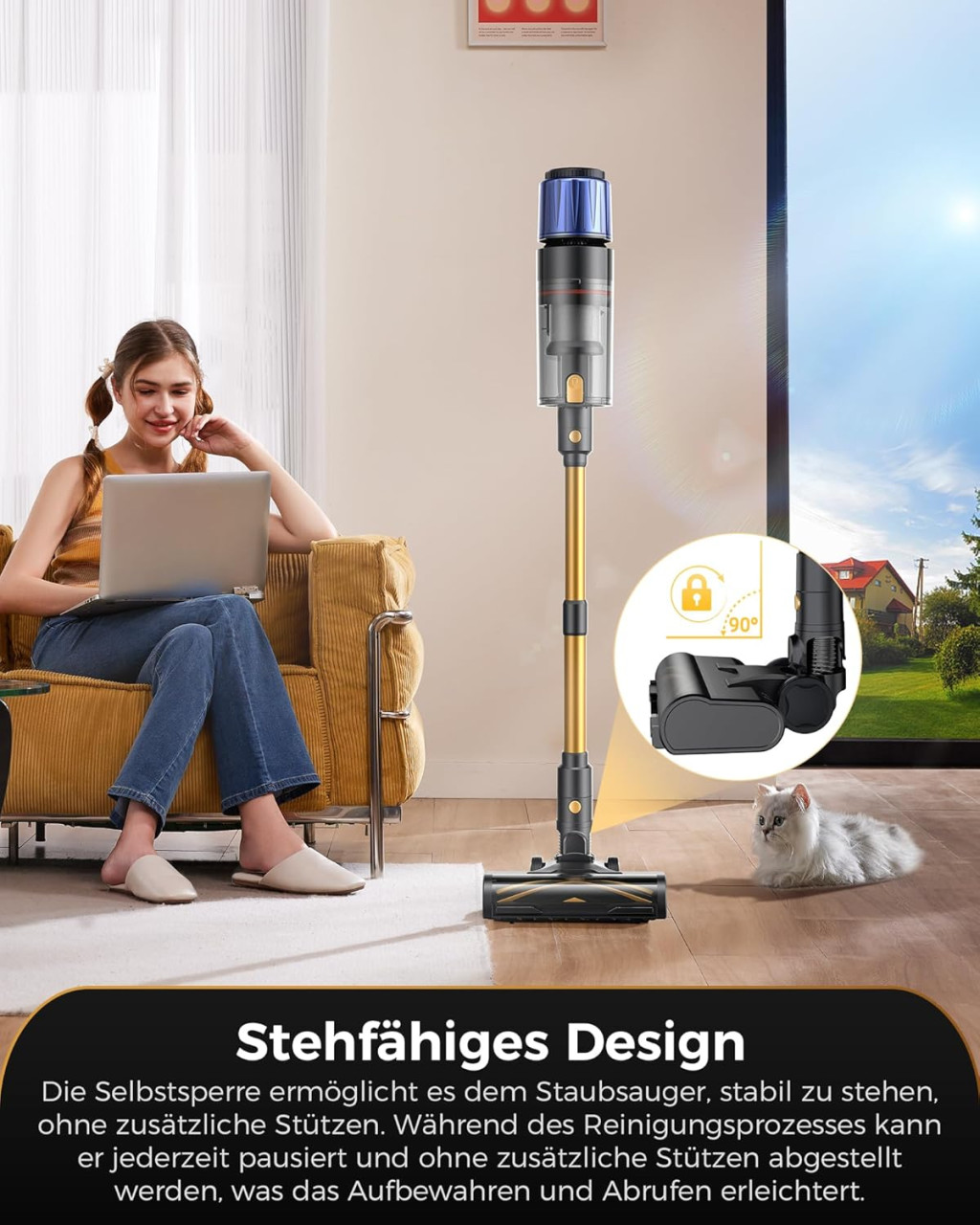 - Ágy és bútorok: A vezeték nélküli kialakítás lehetővé teszi az ágy alatti és bútorok közötti helyek tisztítását