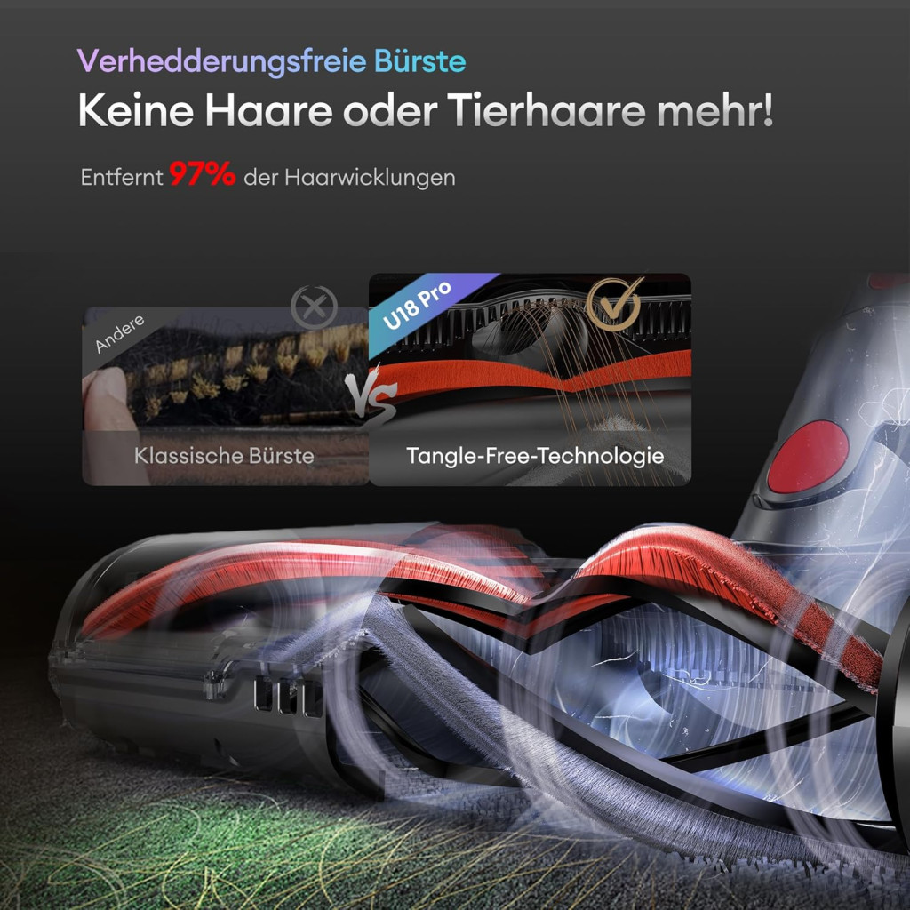 Speciálisan tervezett kefe, amely megakadályozza a szőr felcsavarodását, ideális háziállatokkal rendelkező családok számára.