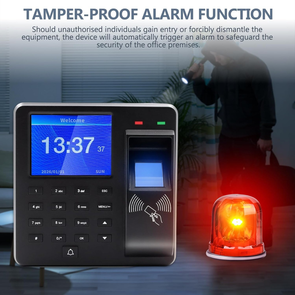 Aparatul de pontaj Kocusu este alegerea ideală pentru companiile care caută o soluție fiabilă, rentabilă și ușor de utilizat. Cele trei metode de identificare asigură o opțiune de logare comodă pentru fiecare angajat, în timp ce generarea automată a rapoartelor și descărcarea datelor prin USB reduc semnificativ sarcina administrativă. Procesorul dual-core pe 32 de biți garantează o recunoaștere rapidă și precisă a amprentelor, iar funcția de alertă de securitate protejează integritatea datelor.