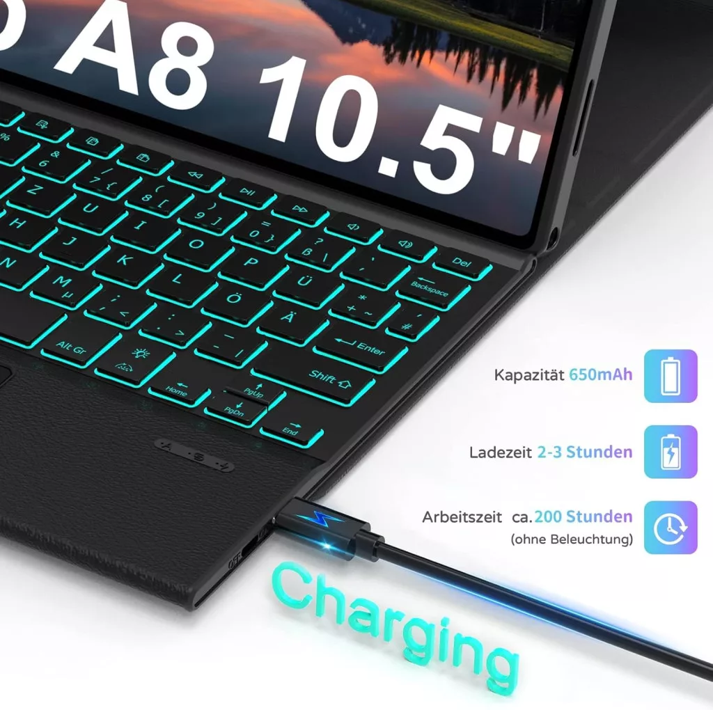 seenda Samsung Galaxy Tab A8 Billentyűzetes Tok Érintőpaddal - Háttérvilágítással