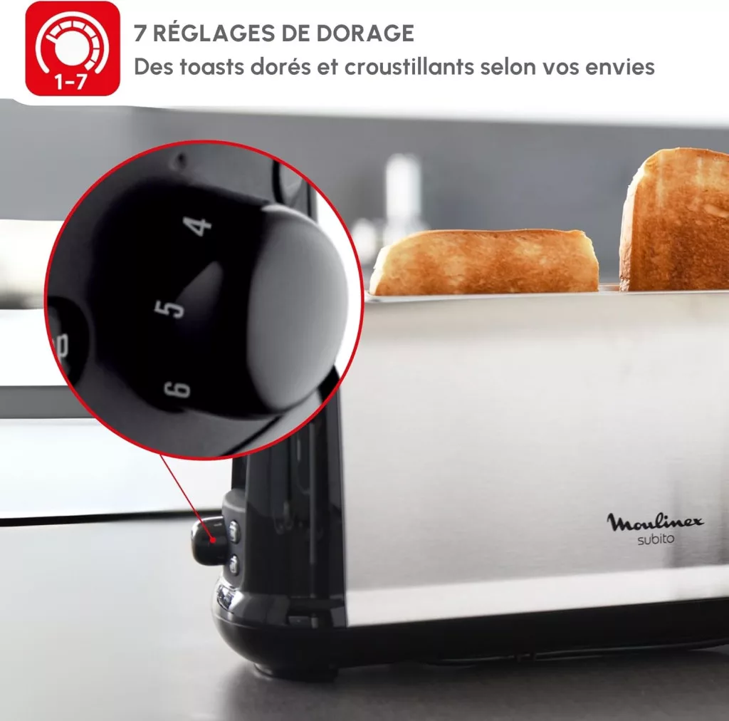 A Moulinex Subito 1000W nem csupán egy kenyérpirító, hanem egy megbízható társa a mindennapi konyhai munkáknak. A rozsdamentes acél kivitel elegáns megjelenést biztosít, míg a 1000 wattos teljesítmény garantálja a gyors és egyenletes sütést. A 7 fokozatú hőmérséklet-szabályozás lehetővé teszi, hogy mindenki megtalálja az ideális sütési szintet, legyen szó könnyű pirításról vagy erős sütésről.