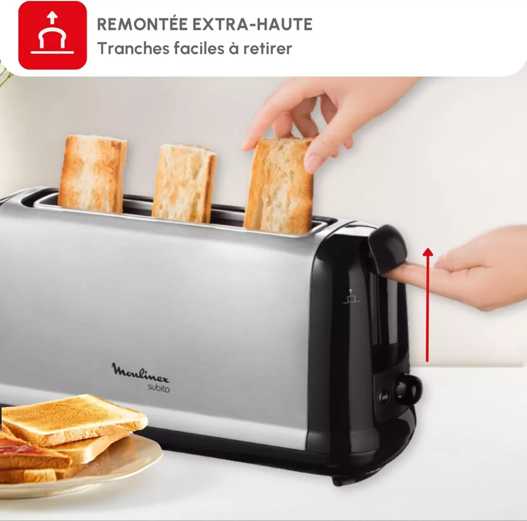 • vs. Moulinex Toaster Express: Az Express modell 1500 wattos és két nyílással rendelkezik, de drágább. A Subito ideális az egyéni vagy páros háztartásoknak.