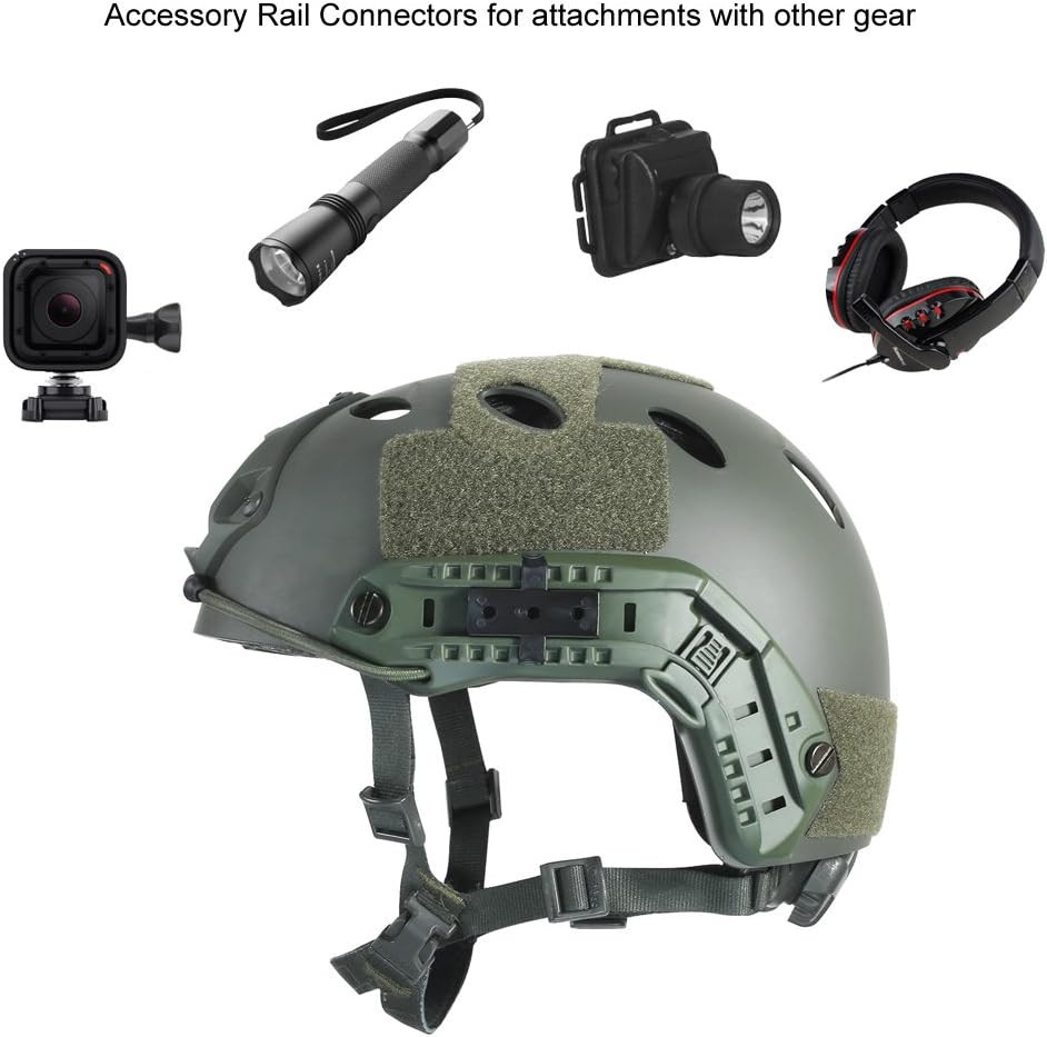 Prilba je plne kompatibilná so systémom MOLLE/PALS, čo znamená, že na ňu môžete jednoducho pripevniť rôzne taktické doplnky. Bočné lišty umožňujú bezpečné uchytenie popruhov plynových alebo kyslíkových masiek, zatiaľ čo predná konzola je perfektná na montáž nočného videnia, taktických svietidiel alebo akčných kamier.