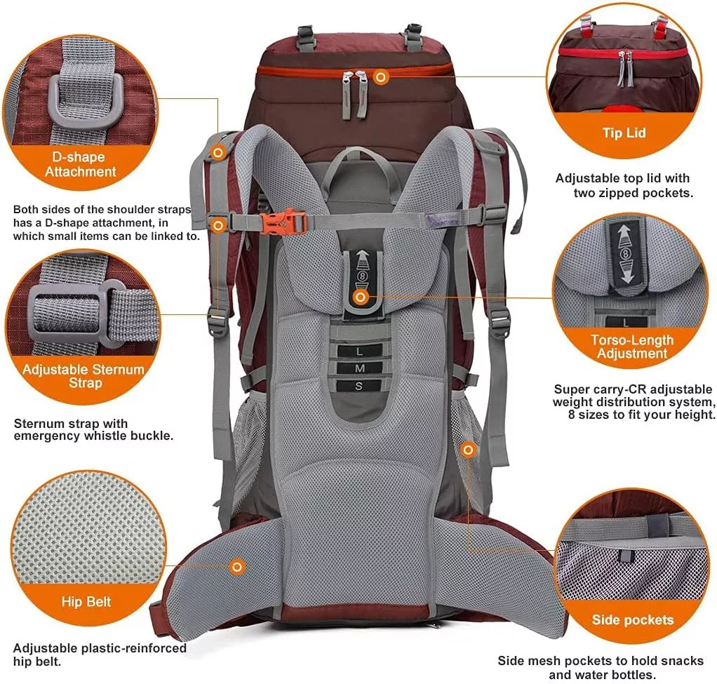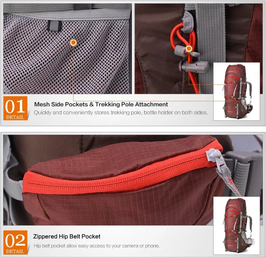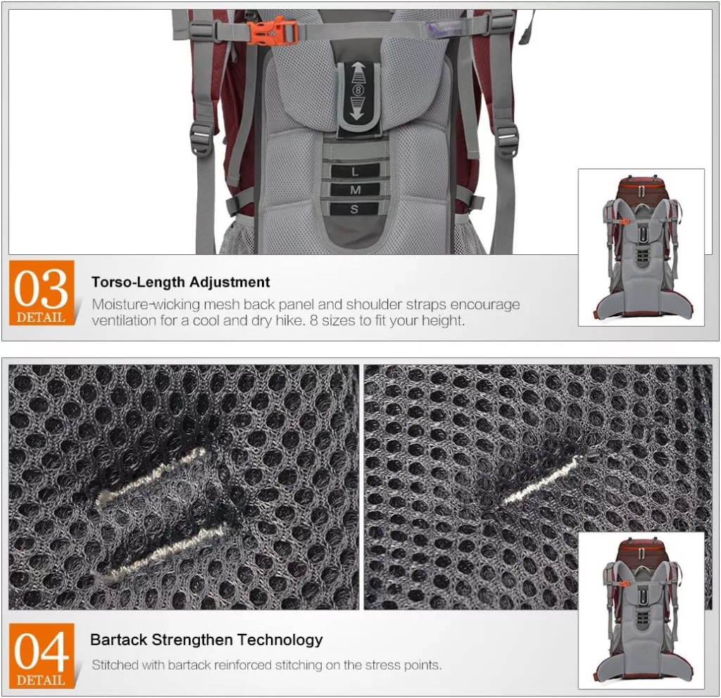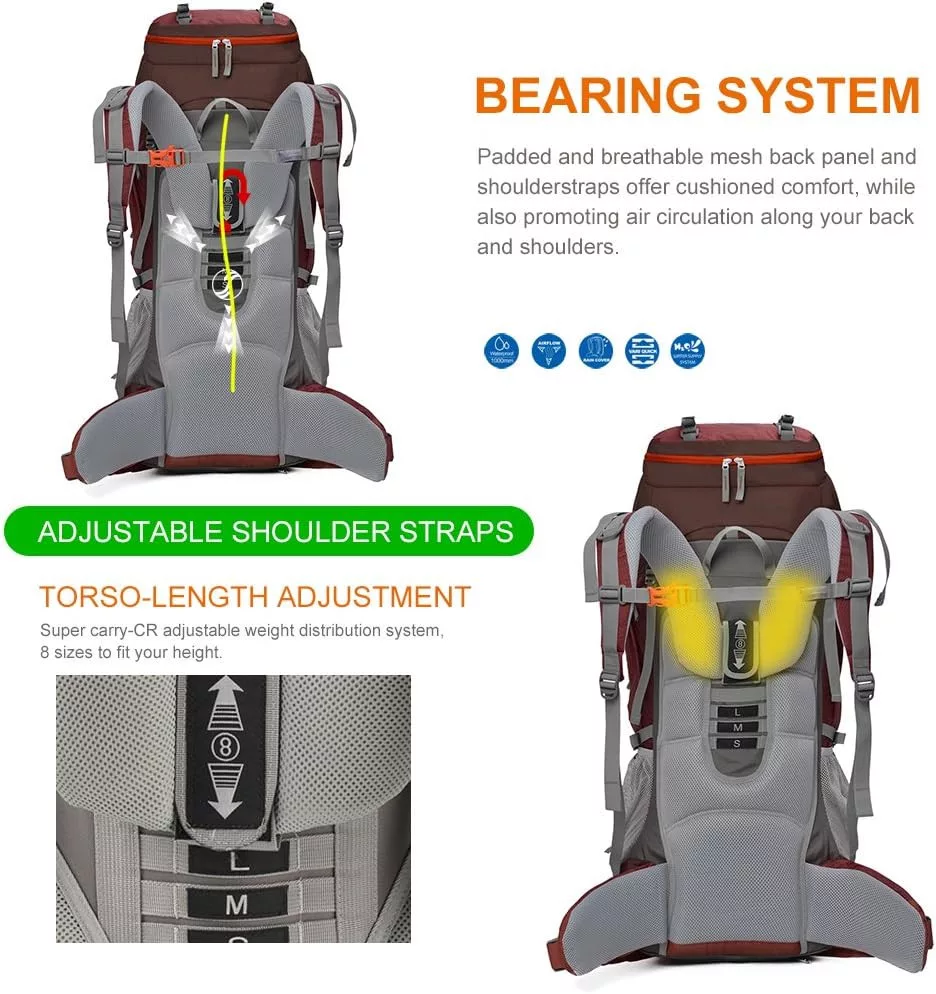 MOUNTAINTOP 70L Turistický batoh s pláštenkou pre mužov a ženy na turistiku a kempovanie
