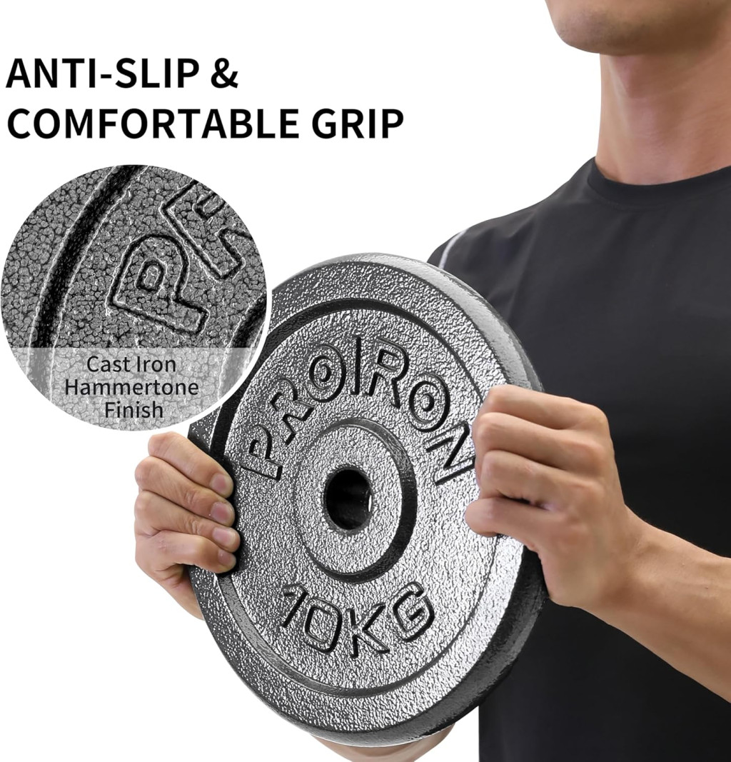 Liatinové kotúče PROIRON (1.25kg, 2.5kg, 5kg, 10kg) sú ideálnou voľbou pre profesionálny silový tréning. Liatinový materiál zaručuje dlhú životnosť a odolnosť, zatiaľ čo priemer otvoru φ25mm je kompatibilný s 24mm činkovými tyčami. Rôzne možnosti hmotnosti umožňujú presné nastavenie záťaže a postupnú progresiu. Či už si chcete vybudovať domácu posilňovňu alebo pracujete v profesionálnom fitness centre, táto sada je dokonalou voľbou. PROIRON je lídrom na globálnom trhu fitness vybavenia od roku 1997 a garantuje vynikajúcu kvalitu a zákaznícky servis.