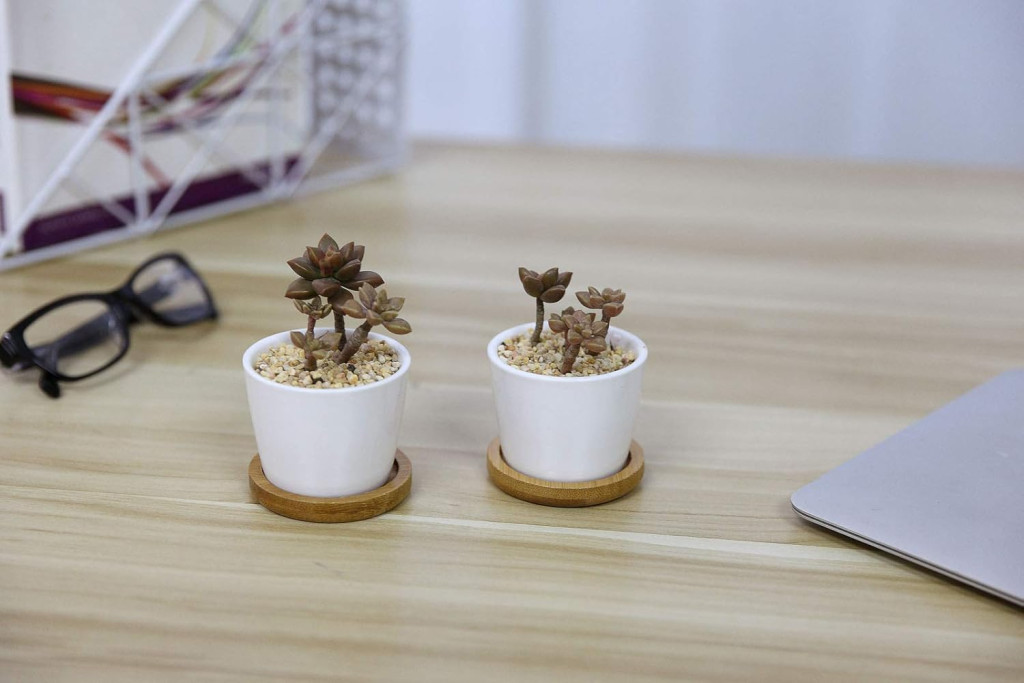 A szukkulensek és kaktuszok alacsony karbantartási igénnyel rendelkeznek, de néhány alapvető gondozási tipp segíthet abban, hogy hosszú ideig szépek maradjanak. Ügyeljen arra, hogy a cserépben lévő talaj teljesen kiszáradjon az újabb öntözés előtt, mivel a szukkulensek nem szeretik a túl nedves talajt. Nyáron hetente egyszer, télen pedig ritkábban öntözzön. A cserépet olyan helyre helyezze, ahol elegendő közvetett fény éri. A kerámia cserépet rendszeresen tisztítsa meg egy puha, nedves ruhával, hogy megőrizze szépségét. A bambusz alátét alatt helyezzen egy vékony szövetdarabot, ha az asztal nagyon érzékeny a nedvességre.