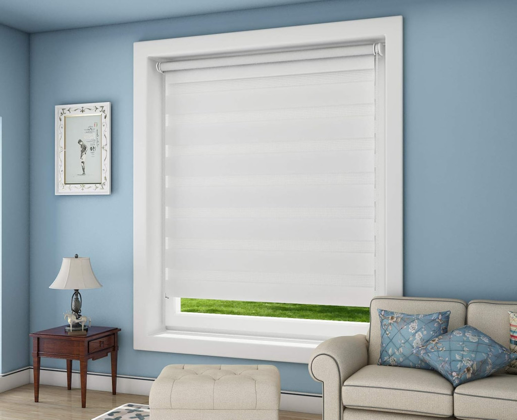OUBO Dupla Roló Fehér Sötétítő Roló Fúrás Nélkül Csiptetős Rögzítéssel Ablakra Ajtóra Oldalsó Húzóval