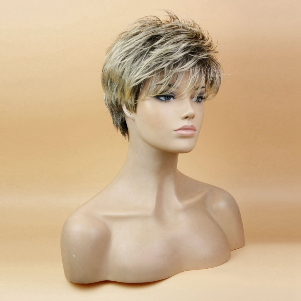Dámska krátka syntetická parochňa s blond vlasmi a tmavým odtieňom
