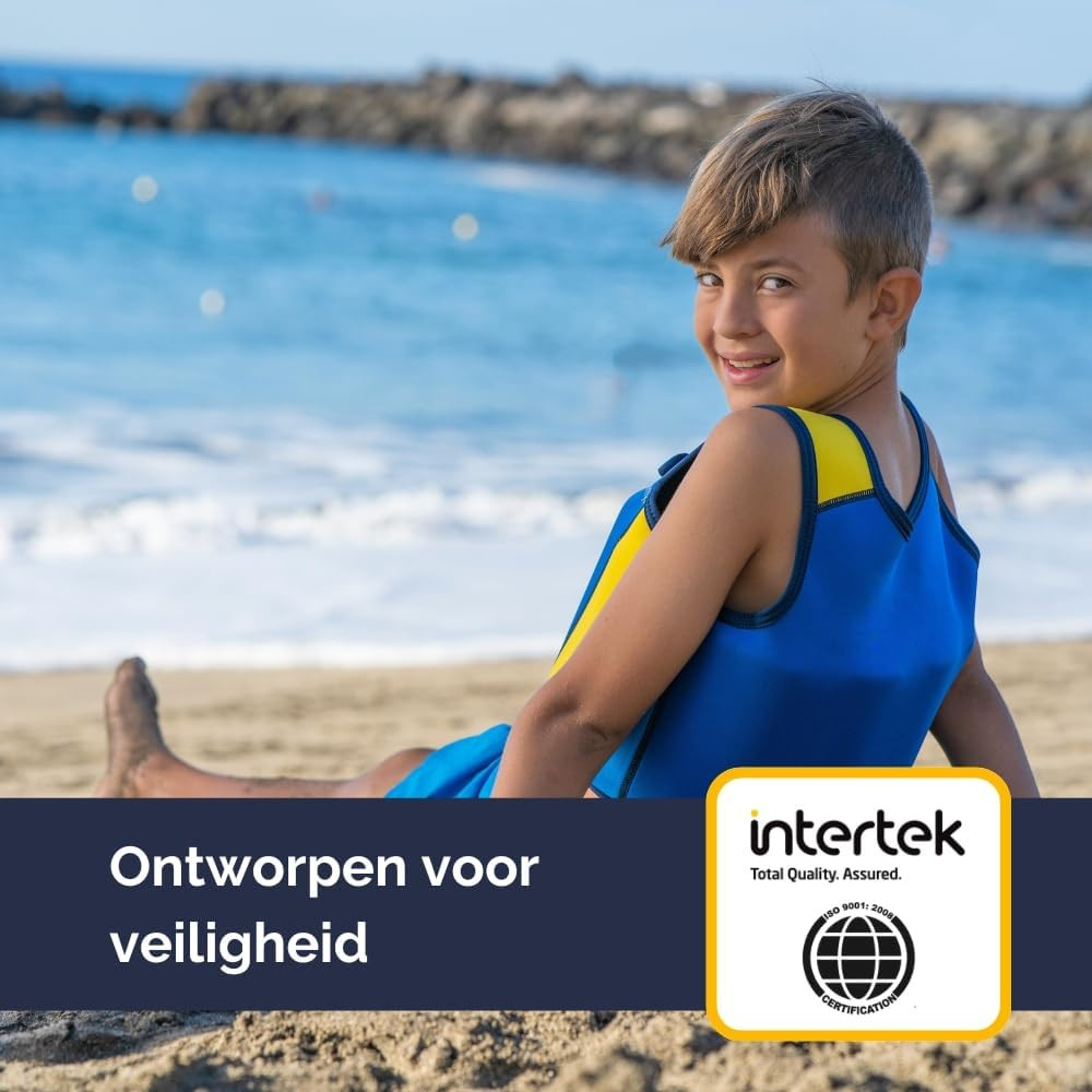 A mellény CE tanúsított és megfelel az összes EU biztonsági szabványnak, így a szülők teljes bizalommal használhatják. Az Európában fejlesztett és világszerte elismert design kombinációja a biztonságnak, kényelemnek és támogatásnak, amely az úszástanulást hatékonyabbá és szórakoztatóbbá teszi.