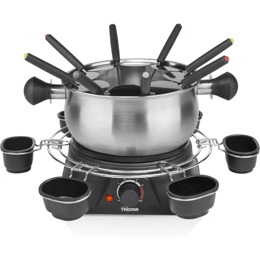 A Tristar FO-1109 fondue készlet kiváló választás azoknak, akik szeretik a közös étkezéseket és a meghitt estéket. A készlet minden szükséges alkatrészt tartalmaz, hogy azonnal elkezdhesse a fondue élvezetét. A 1400 wattos teljesítmény és az 5 fokozatú termosztát biztosítja, hogy bármilyen fondue típushoz megtalálja az ideális hőmérsékletet.
