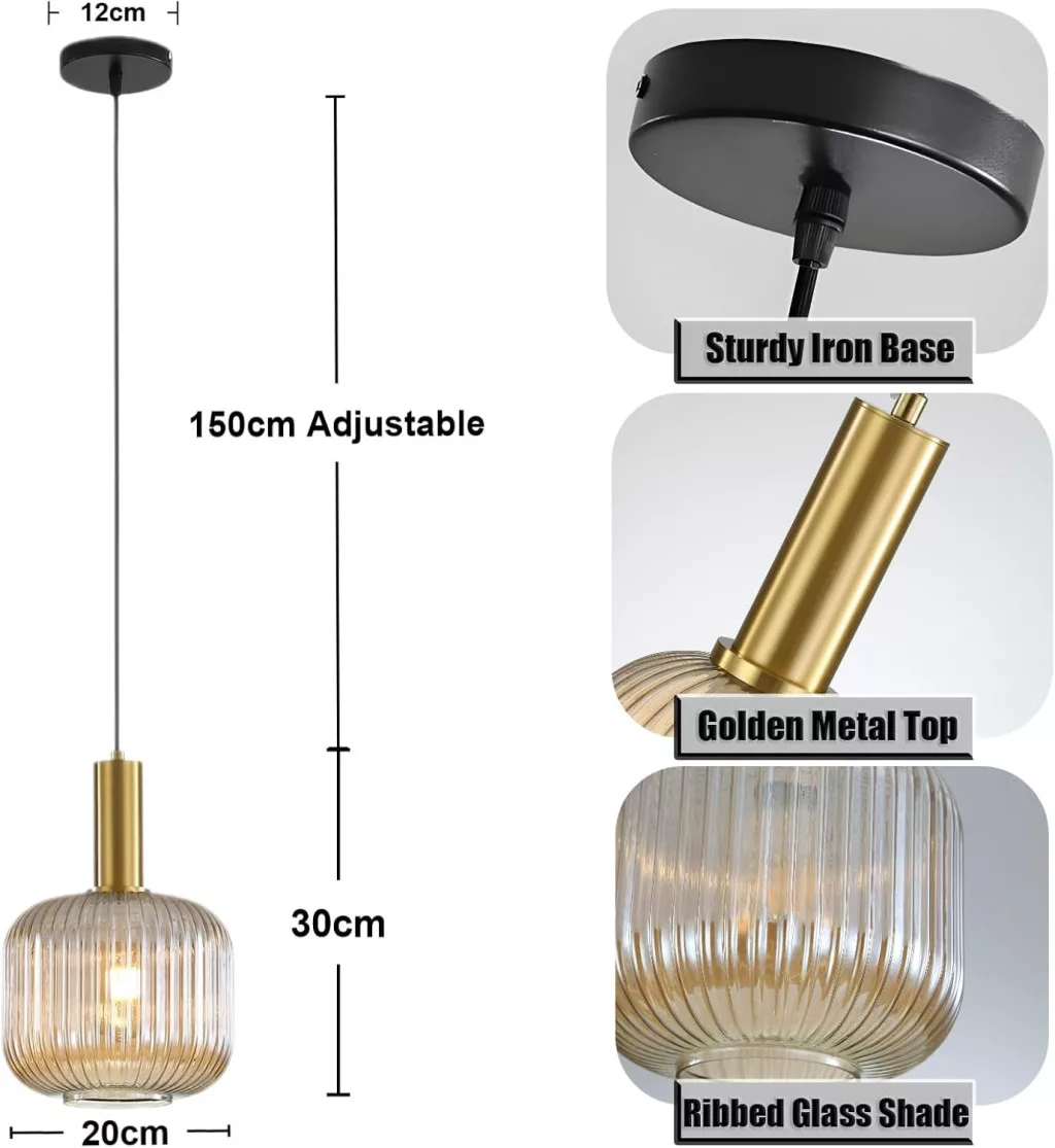 Ez az ipari vintage függőlámpa a klasszikus retro stílus és a modern dizájn tökéletes kombinációja. A csíkos üveg árnyékoló puha, meleg fényt biztosít, míg a polírozott sárgaréz lámpatartó elegáns megjelenést kölcsönöz. Az E27 foglalat és 220V-os feszültség biztosítja a széles körű kompatibilitást LED izzókkal, így energiahatékony megoldást nyújt otthonához vagy munkahelyéhez.