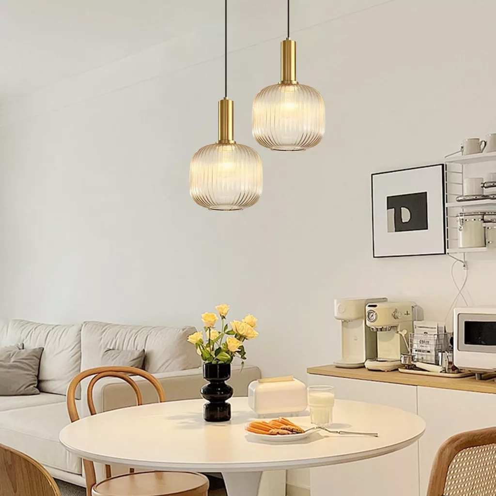 • Csíkos üveg árnyékoló: Seiko fújt, egydarabos üveg lámpatest, átlátszó csíkos dizájnnal, amely puha és meleg fényt biztosít