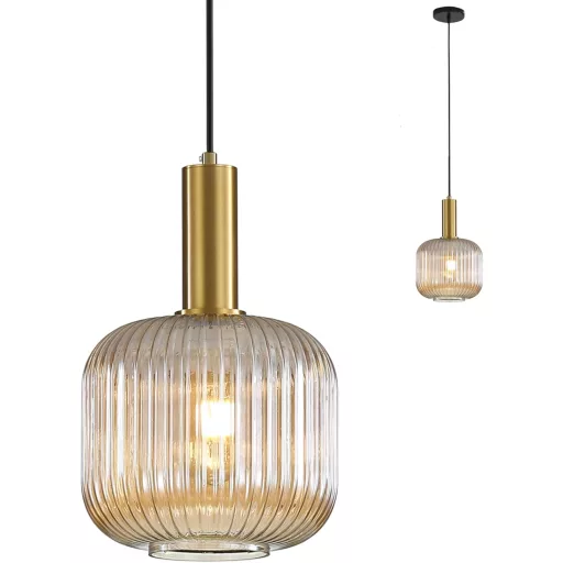 HJXDtech Vintage priemyselné závesné svietidlo s lešteným mosadzným držiakom a skleneným tienidlom