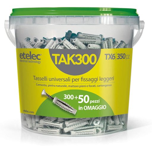 A Bucket Box Kit 350 Universal Plugs egy professzionális minőségű dübel és csavar szett, amely 350 darabos kiszerelésben érkezik. Ez az univerzális megoldás ideális választás otthoni felújítások, karbantartási munkák és professzionális építkezések számára. A szett 300 darab TX6 nylon dübelt és csavart tartalmaz, plusz 50 darab ingyenes dübel-csavar párost.