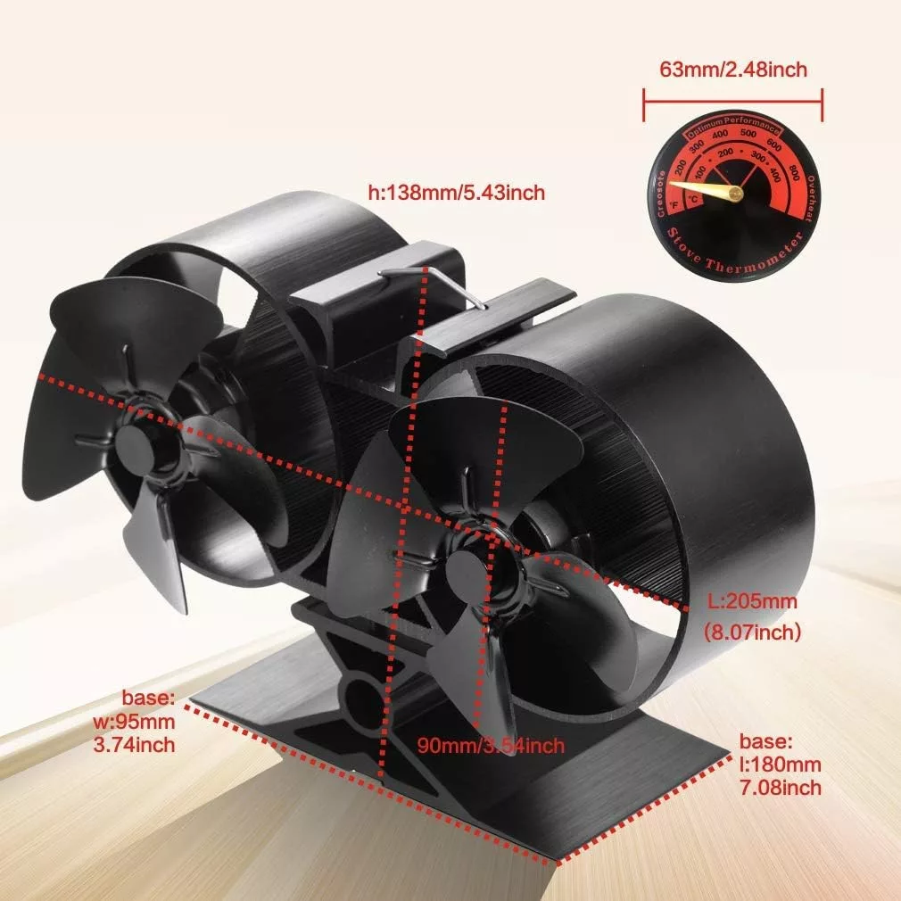 Ez a modern kaminoventillátor forradalmasítja otthona fűtési hatékonyságát. A 8 lapátos innovatív design 50%-kal több meleg levegőt képes keringetni, mint a hagyományos 4 lapátos társai. Az eloxált alumínium háznak köszönhetően tartós és rozsdamentes, míg a beépített hőmérsékletmérő segít nyomon követni a működési hőmérsékletet. A ventillátor teljesen önellátó - nem igényel áramforrást vagy akkumulátort, mivel a kamin hője hajtja meg a termoelektromos modult.