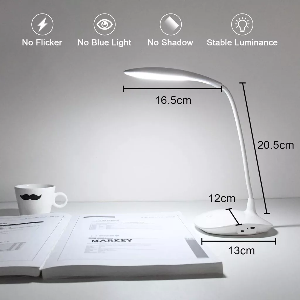 - Možnosť nabíjania cez USB: Nabíjateľná stolná lampa má USB port a kábel. Môžete ju pripojiť k tabletom, notebookom, power bankám alebo adaptérom telefónov na nabíjanie.