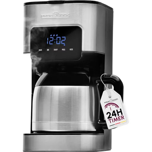A Profi Cook PC-KA 1191 ideális választás különféle helyzetekhez és környezetekhez. Tökéletes a háztartásban, ahol a család vagy a vendégek számára szeretnél minőségi kávét készíteni. Az irodában vagy munkahelyen biztosítja a szükséges energiát a nap során. Utazások és kempingezés során a termokancsó hosszú ideig megtartja a kávé hőmérsékletét, így akár több órás kiránduláshoz is ideális. A 24 órás időzítő funkció lehetővé teszi, hogy előre beállítsd a kávékészítést, így reggel azonnal fogyasztható lesz az ideális hőmérsékletű ital.