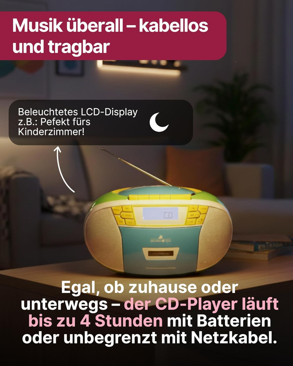 Či už ide o spálňu, detskú izbu alebo cestovanie, tento retro prehrávač je vždy správnou voľbou. Objavte znova kúzlo klasických formátov médií a užite si pohodlie modernej technológie v nádhernom retro balení!